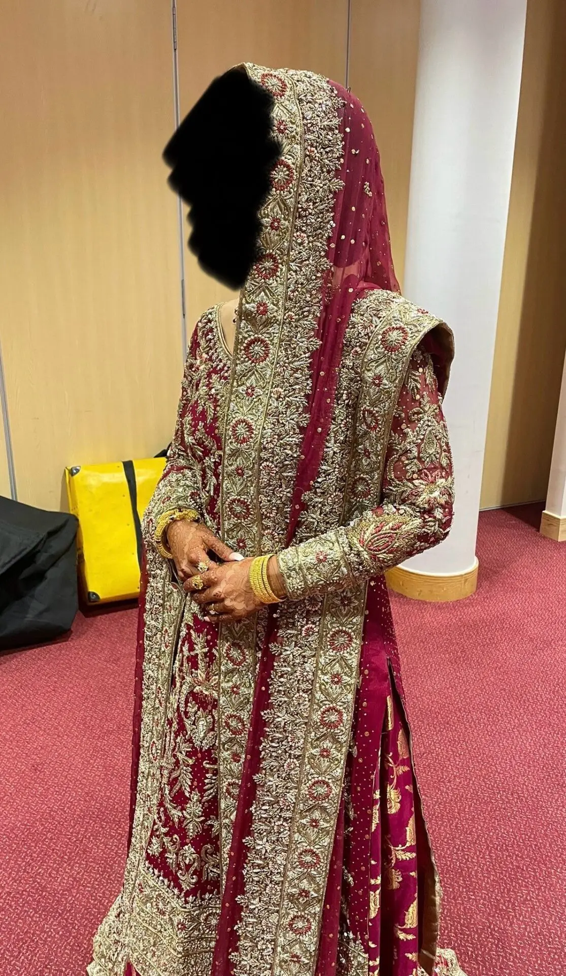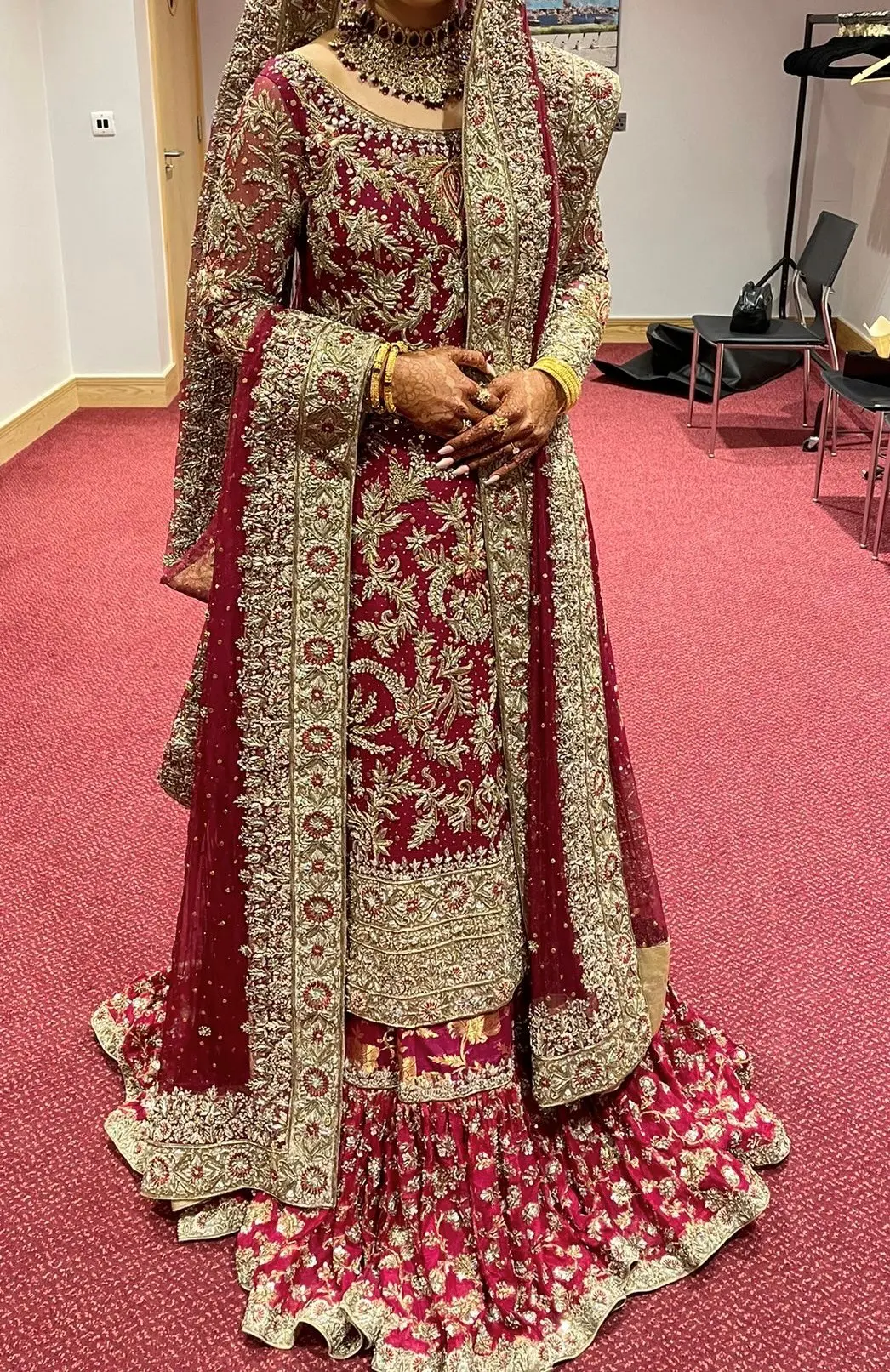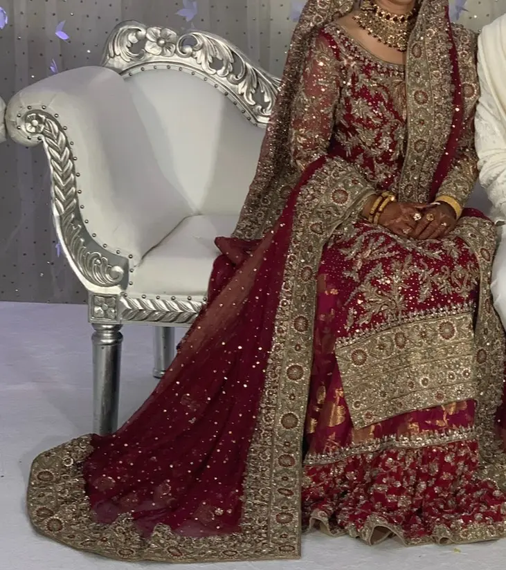 Aisha Naheed bridal lehnga - Gold and maroon embroidery