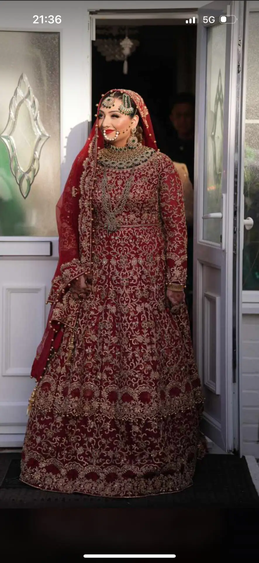 - No beautiful intricate bridal gown with a trail, duputta and a matching pouch to go with it