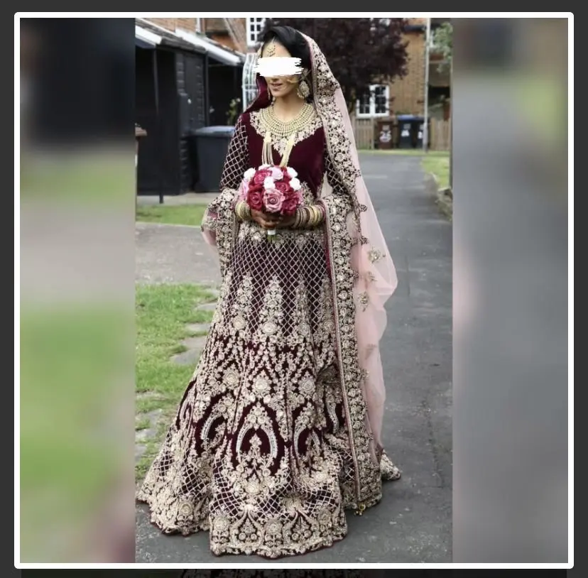 This is a Stunning, Gorgeous Asian Bridal Dress, from Seema Saree’s, Original Price was: £1,200. Selling for: £850 It’s an All Velvet Dress, the colour Plum, with embellishments, also the Back being Fully bedazzled. Has a Zip just Under the Arm. Comes with the Dusty Pink Dupatta. It was Originally a Lengha but I Altered it into a Long Dress and to My Size... (Size 6) My Height is 5 Ft 4 for Reference I Wore Heels on my Wedding Day It’s in Perfect Condition, Only Worn for a Few Hours.
