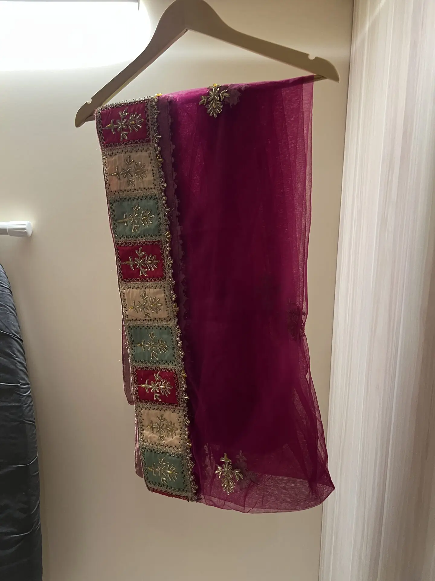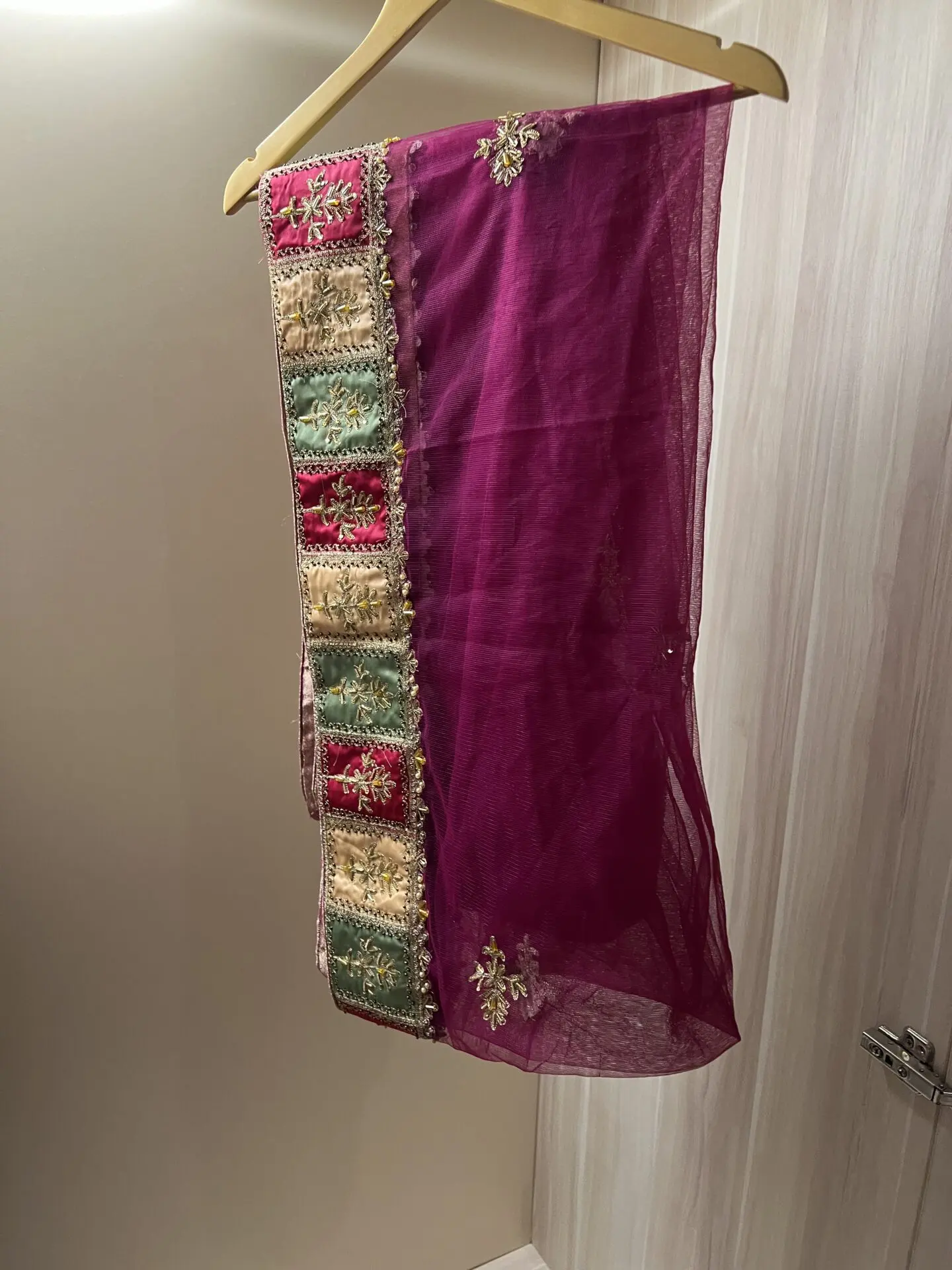 3 piece Light plum colour lengha. Brand new, custom made with stunning heavy embroidery. Size s/m. Chest 21. Ideal for party wear or engagement.