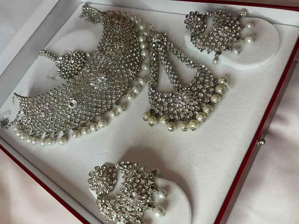 Beautiful 4 piece Pearl/diamonte jewellery set
