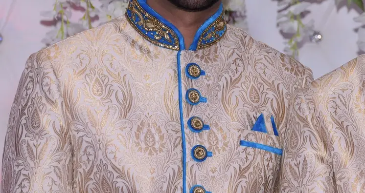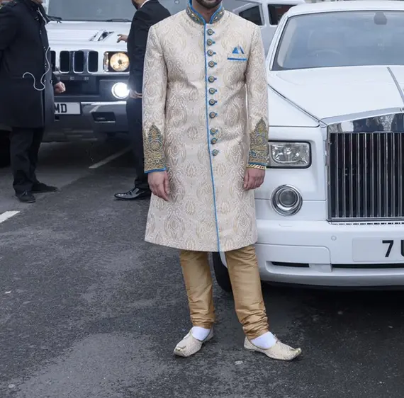 Men’s asian custom made blue & gold sherwani