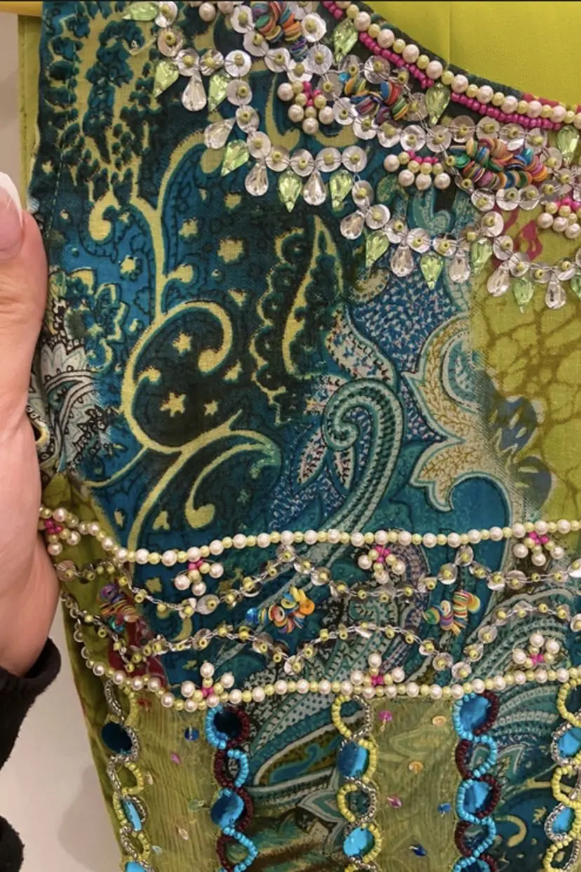 it is a bespoke outfit and can’t find peices like these anywhere else comes with shawl that has details and the bottoms