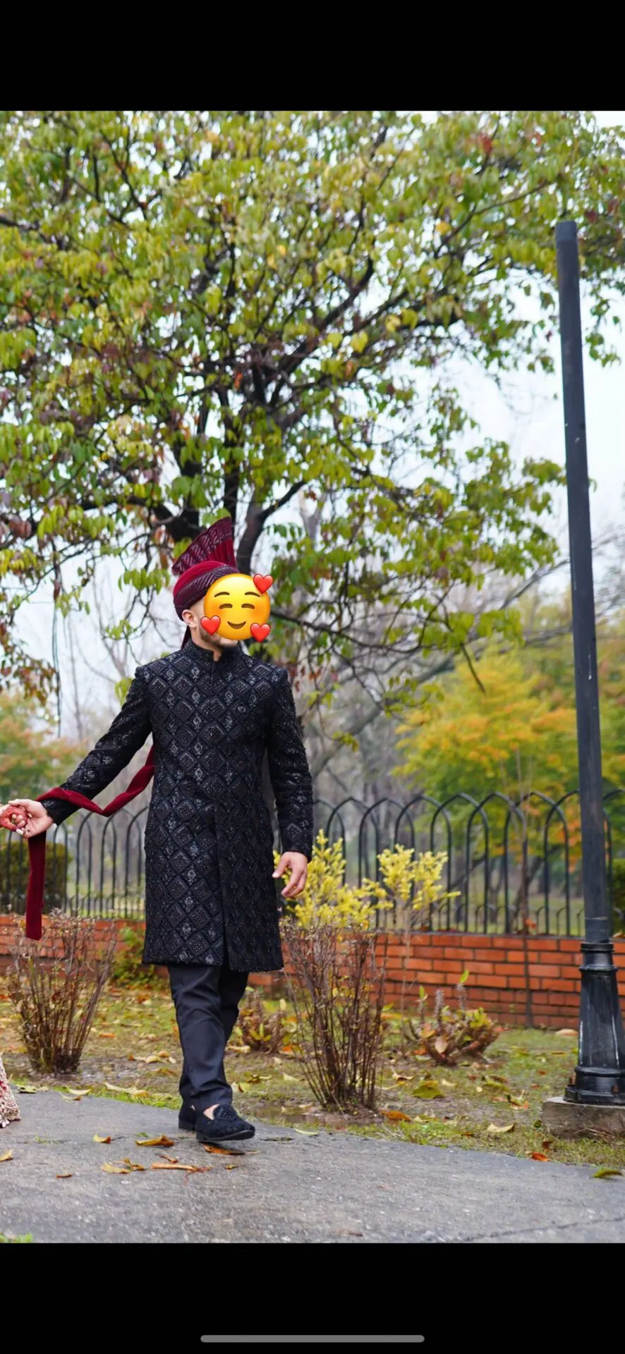 Handmade Black Beaded sherwani, with touches of red. Sherwani with Kameez and trouser, worn for literally 4 hours. Turban is not included and nor is shoes , only Black Sherwani, kameez and Trouser. Beautiful men’s piece , original price was £1850 however selling for £1500 as turban and shoes not included.
