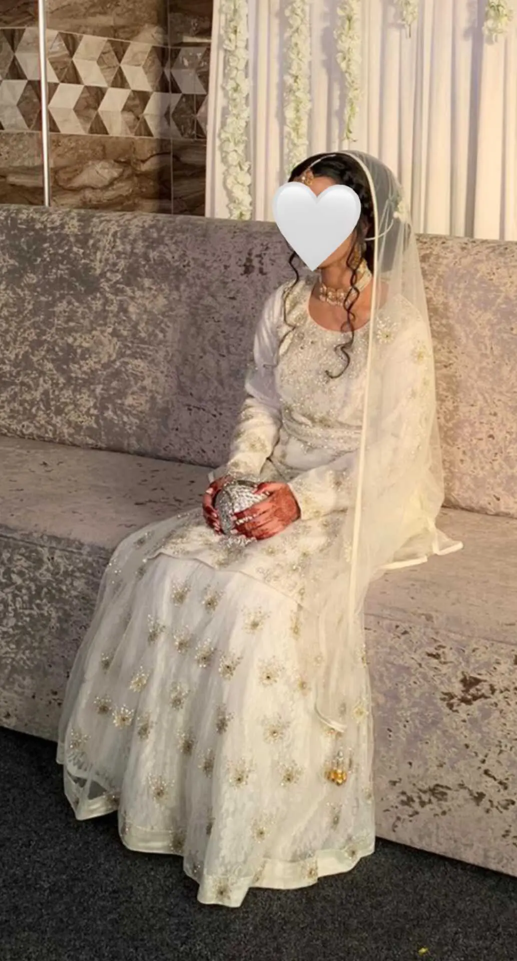 Beautiful nikkah outfit including kameez, skirt, belt and dupatta