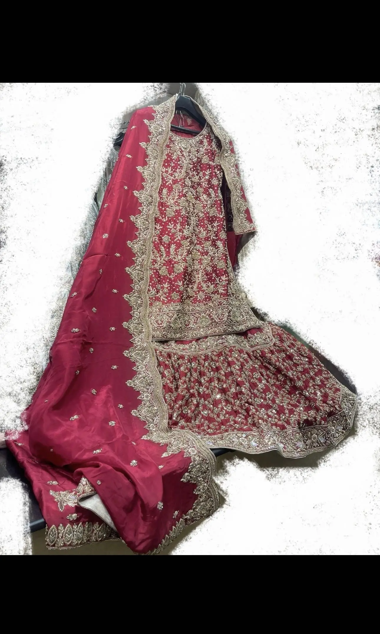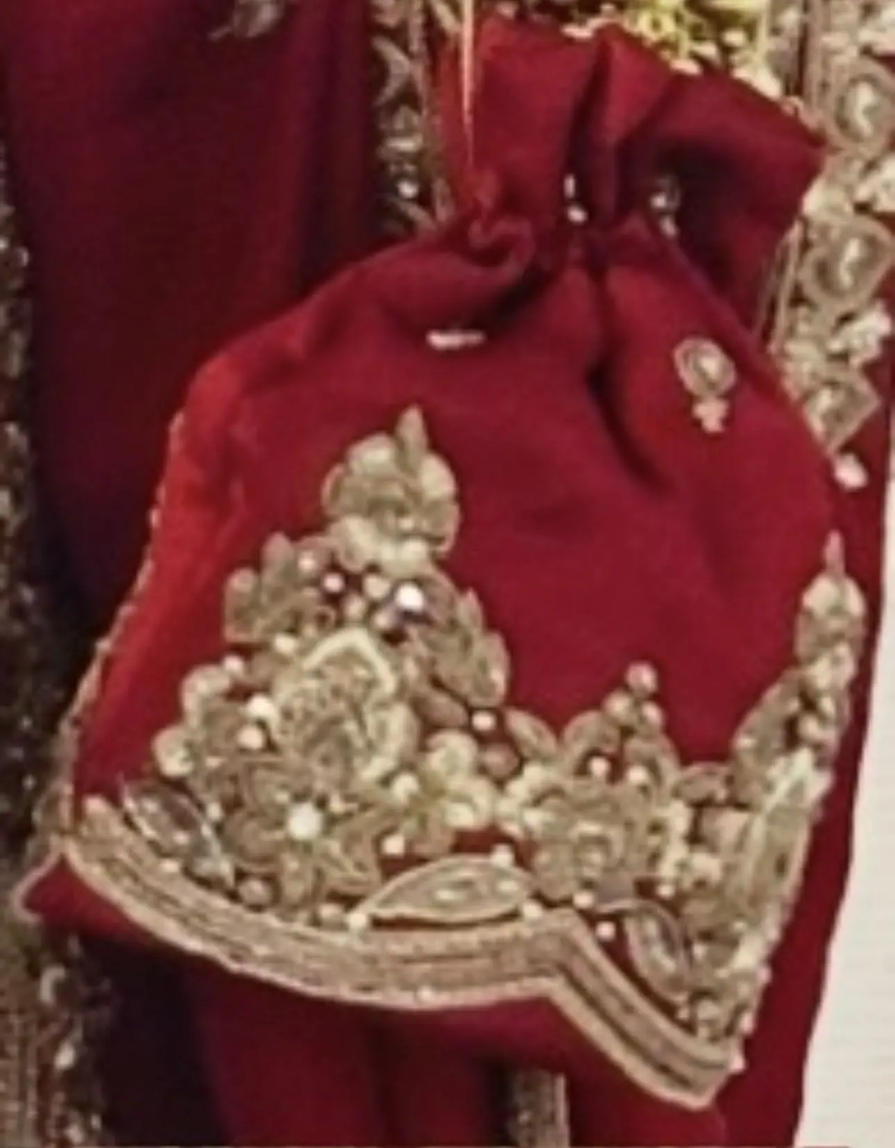 ⭐️ Lengha with mini trail ⭐️ Traditional long kameez ⭐️ Silk dupatta, with beautiful boarder ⭐️ Same colour and design as dress potli bridal pouch ⭐️ Size: small ⭐️ Please note: this item is brand new, not worn even once. Dress did not arrive in time for the event. ⭐️ Excellant, brand new condition