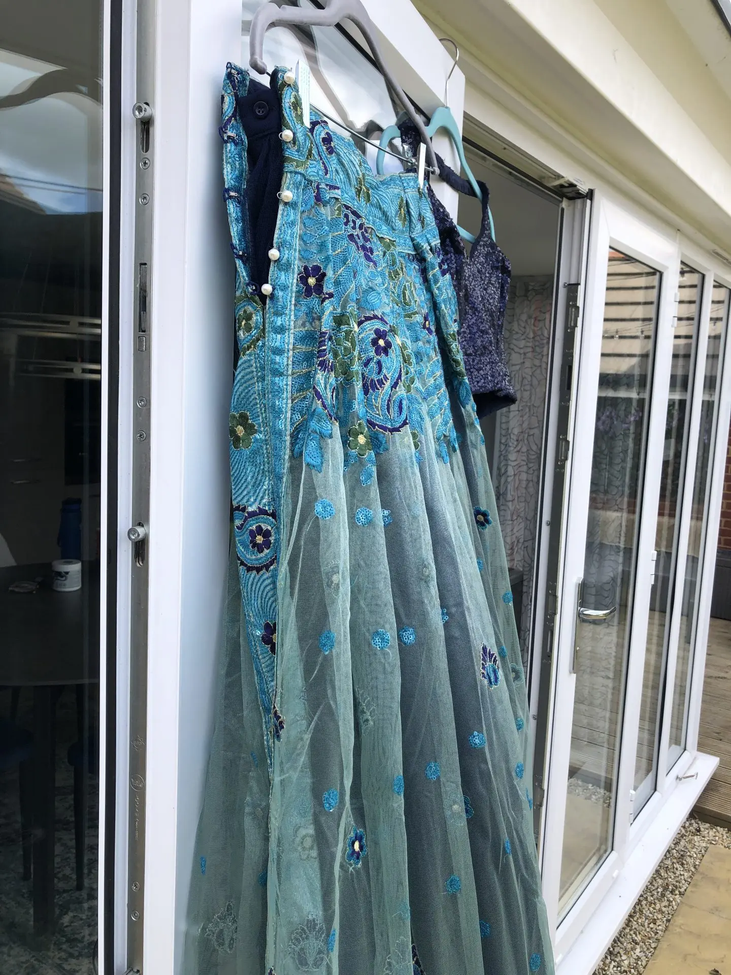 Worn for a few hours for sister’s reception. Excellent condition. Currently fits a size 10/12.