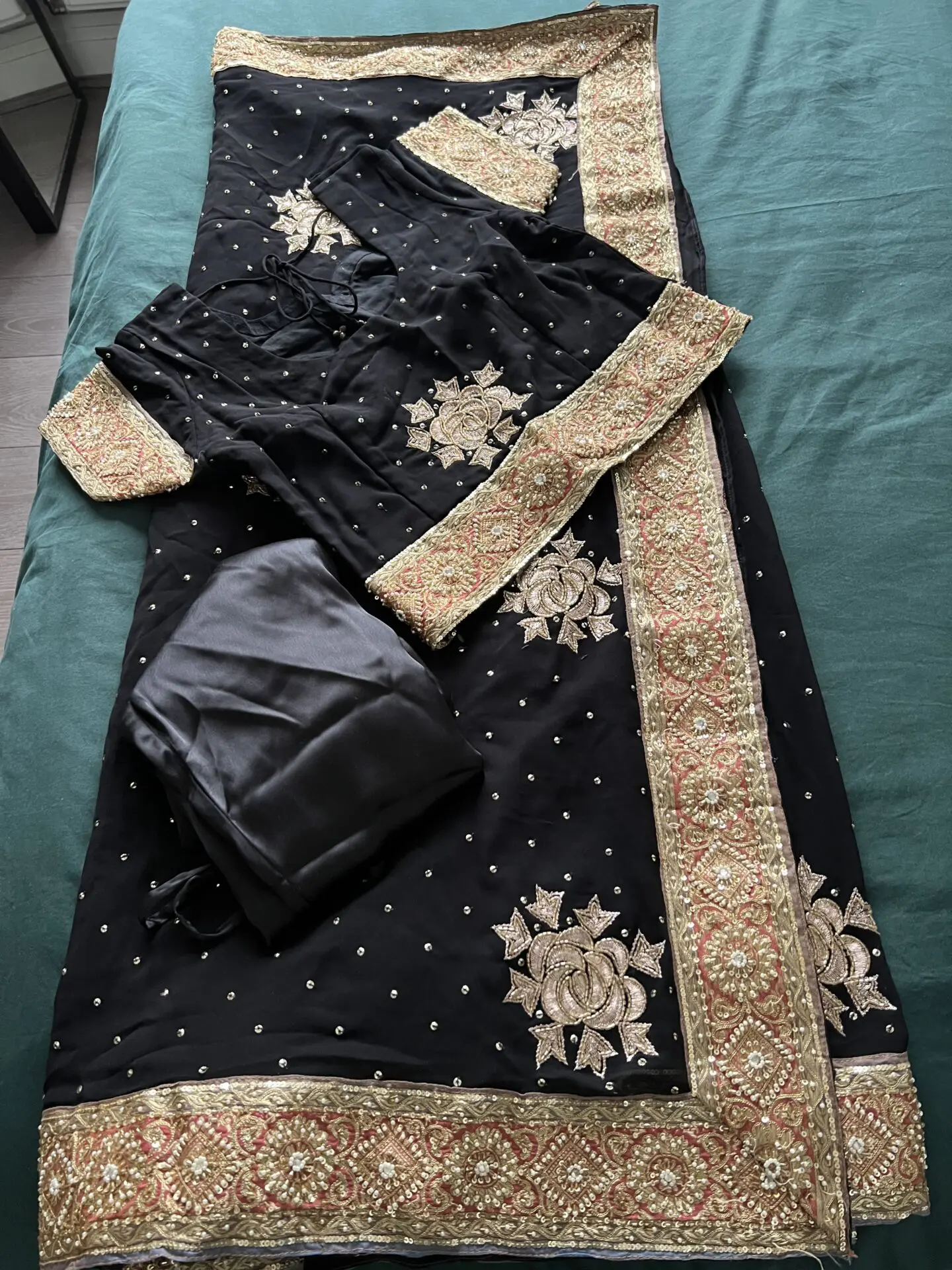 Black Party Saree May 6, 2024 Id: 33699 Black Party Saree £80 Bookmark Share Share This Listing Description: New ready made saree with a black and gold blouse and plain black satin under skirt with gold border and work on main wrap around. Size 10-12 UK Contact Information Phone: +447894254399 categories: Women Address: Greater London Listing Tags: #asianoutfit Post New Review Cancel replyYou must be logged in to post a comment.