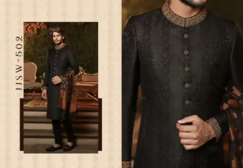 Brand new, never worn before Junaid Jamshed Sherwani in Size M with matching Khussa shoes in size 10. White inner in M included.