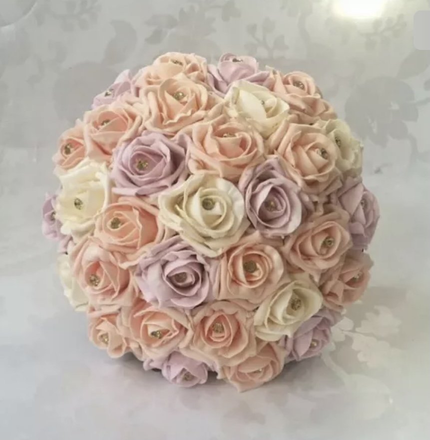 Only used for a few hours Prefect condition Approx diameter 23cm Comes with box Peach, cream and lilac roses with Gold diamanté |