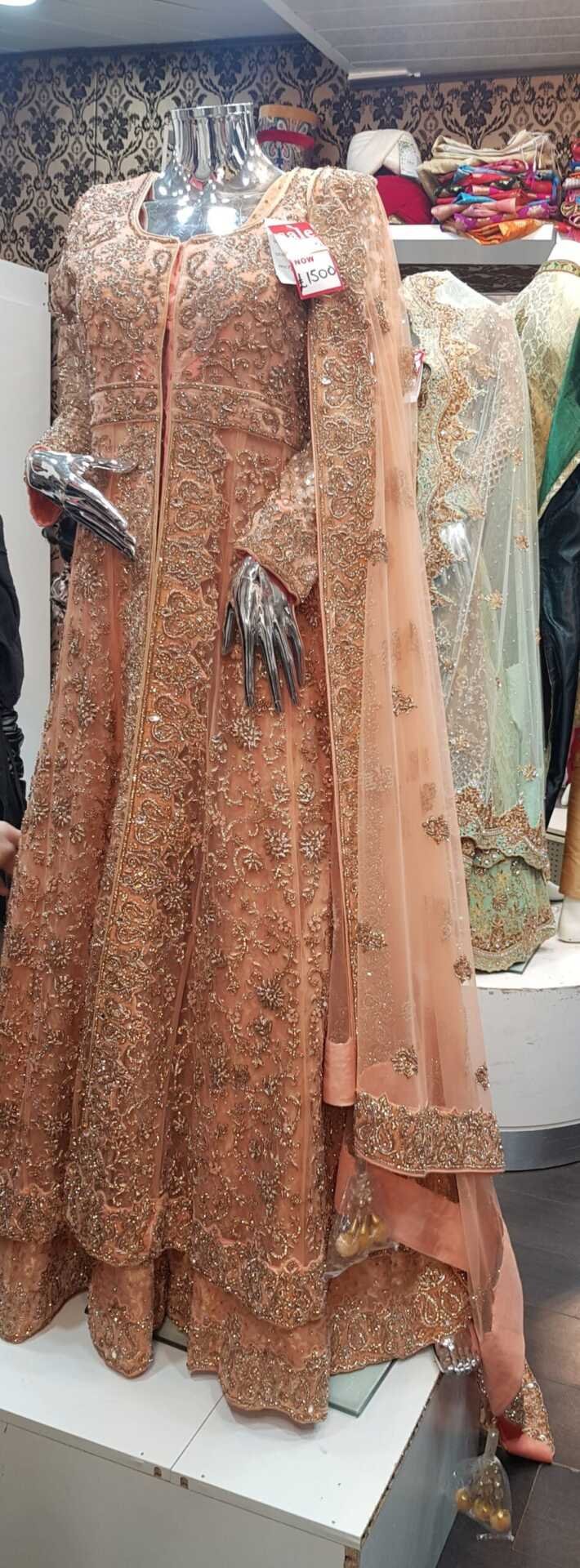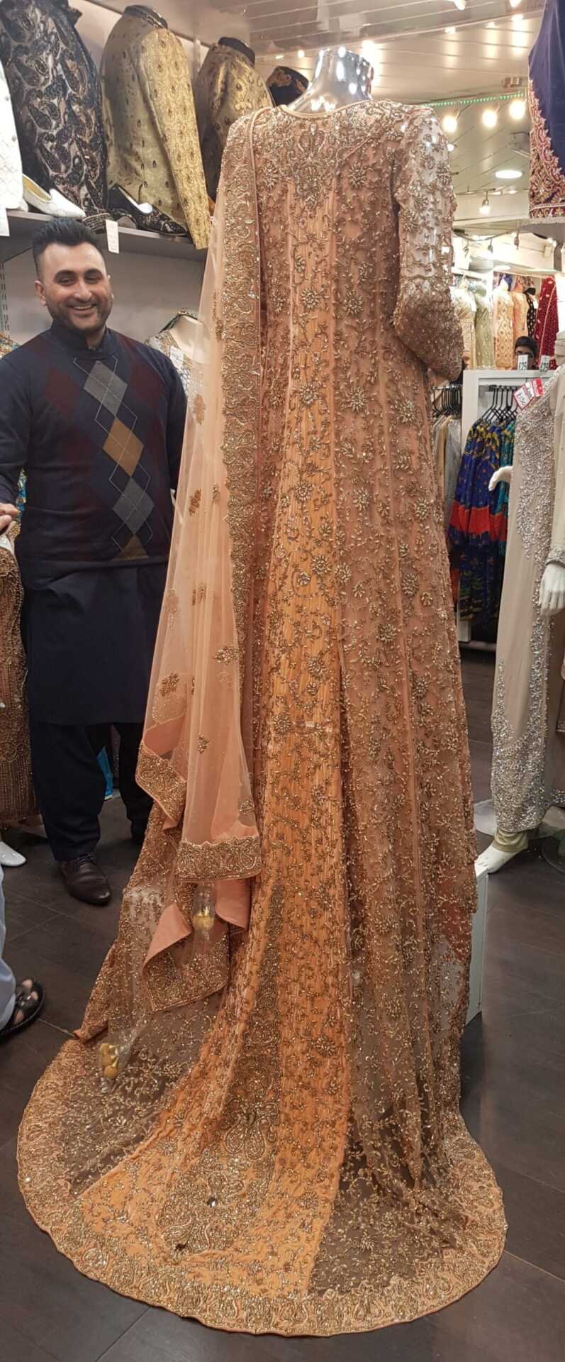 Beautiful Bridal Lengha with tail and full embroidery. Worn once for a few hours in excellent condition fits size 6/8 but can be adjusted as has enough fabric to losen to upto size 12 UK sizes
