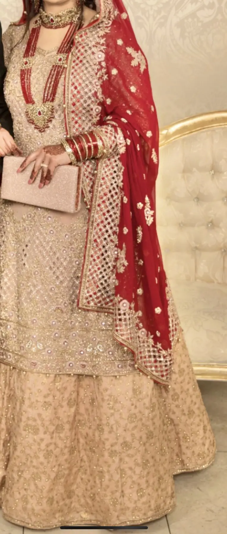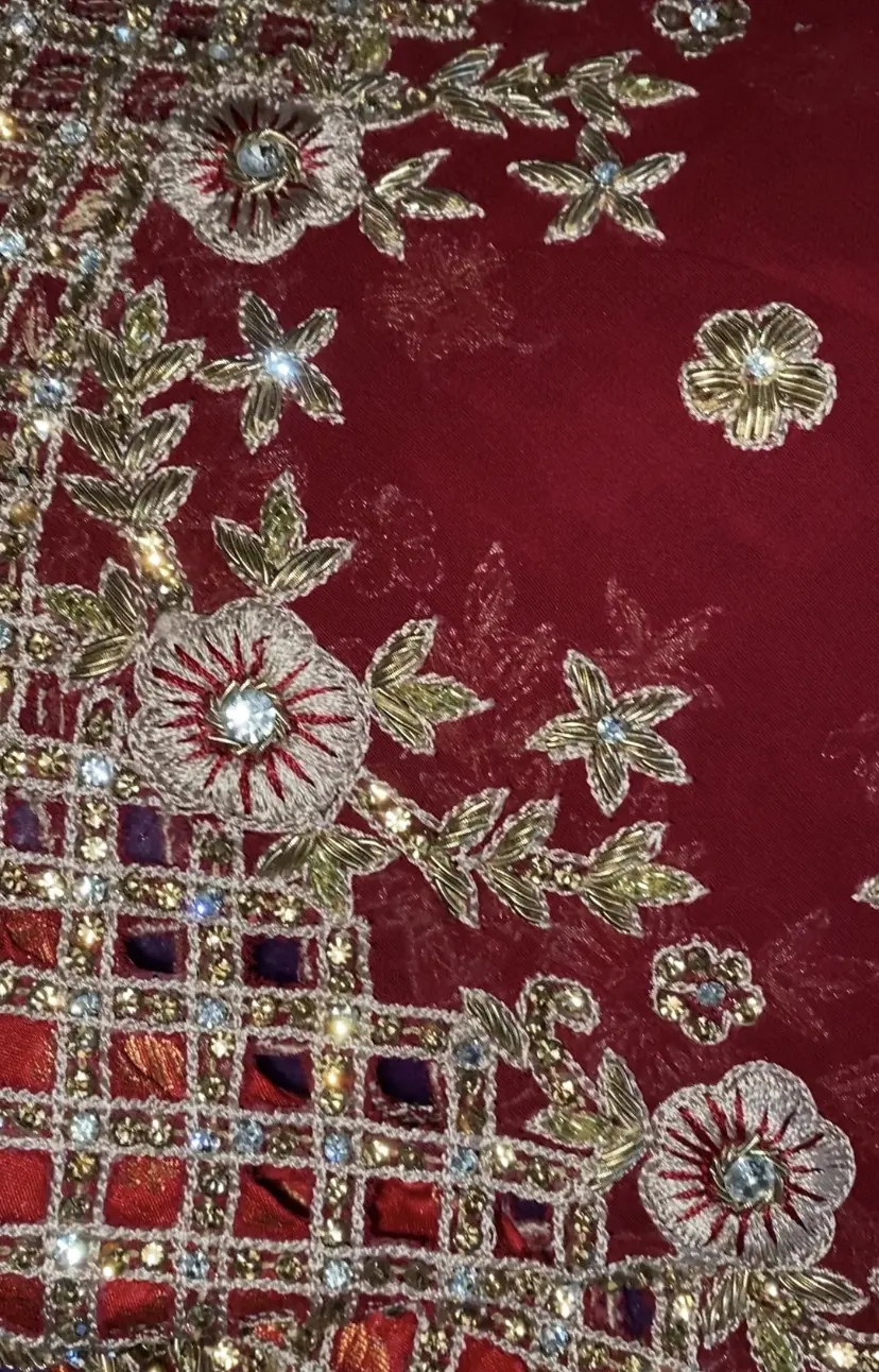 Large red dupatta with sparkle/cut out boarder