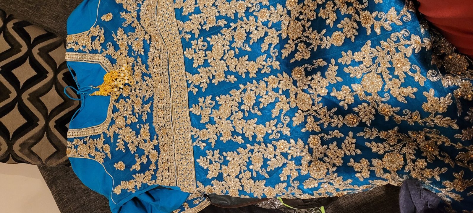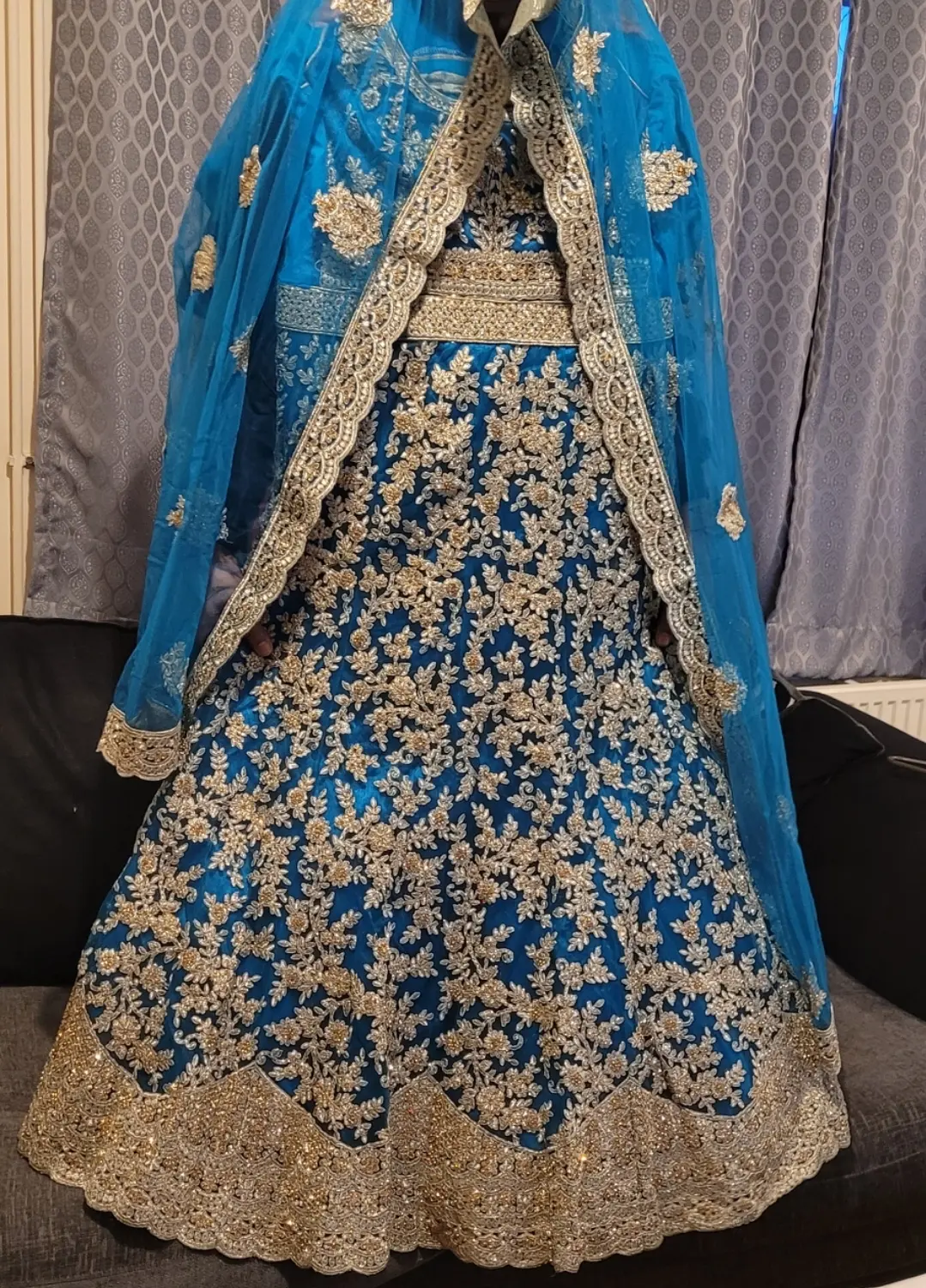 bought new from Mongo's in Southall London for £700 worn once for a few hours. condition is like new. nearest reasonable offers considered. buyer to collect or buyer can pay extra for postage. it has tulle net under to make the gown poofy for an authentic ballgown style. the dupatta is light so can easily be fixed over jewellery.
