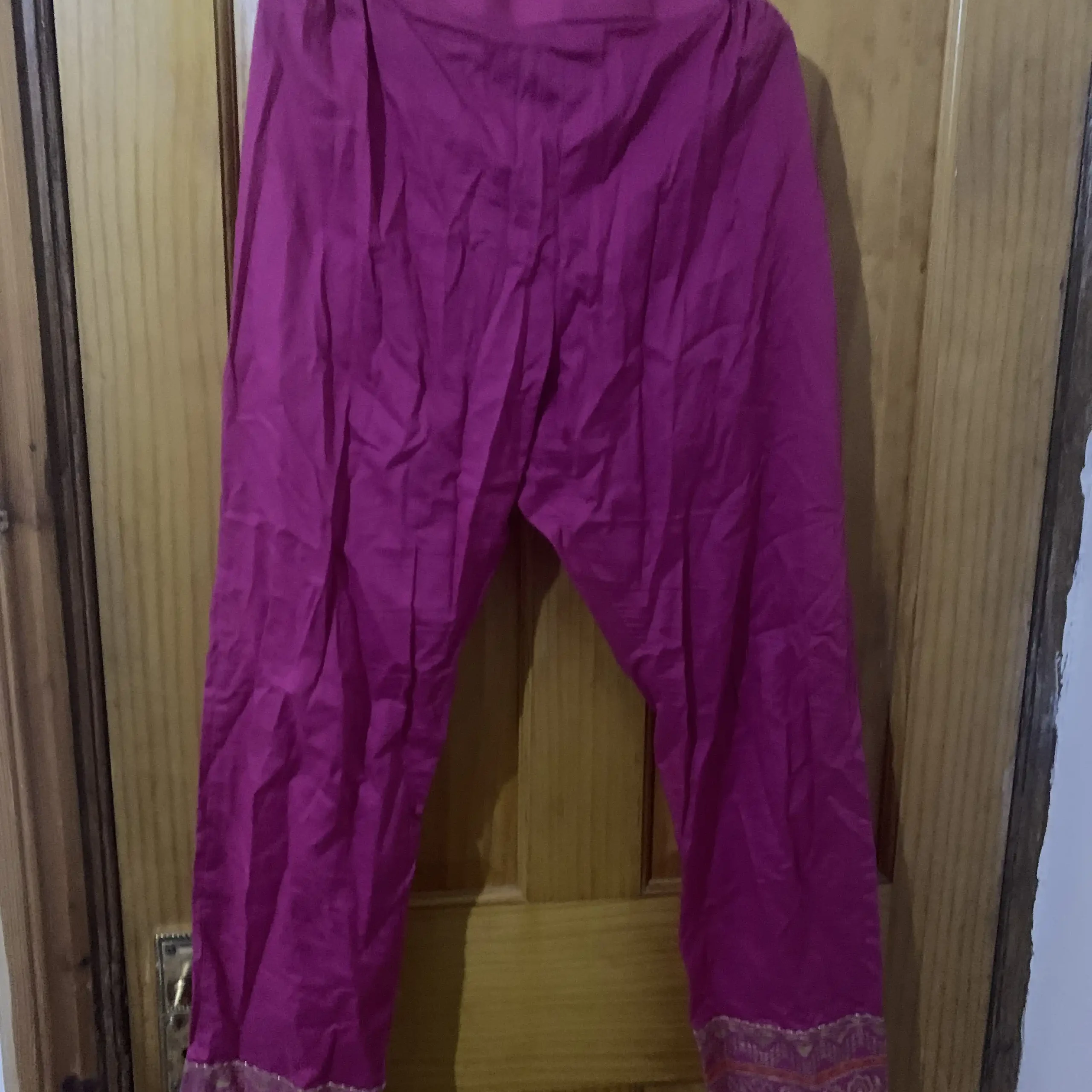 Stunning bright pink silk designer outfit . It’s new but I wore only once for an hour. Then never worn again it comes with kameez and trousers.