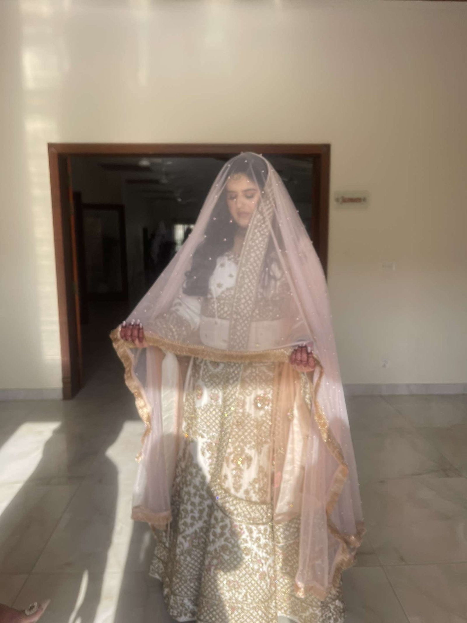 Pre-loved elegant Nikkah dress with a stunning embroidered scarf,