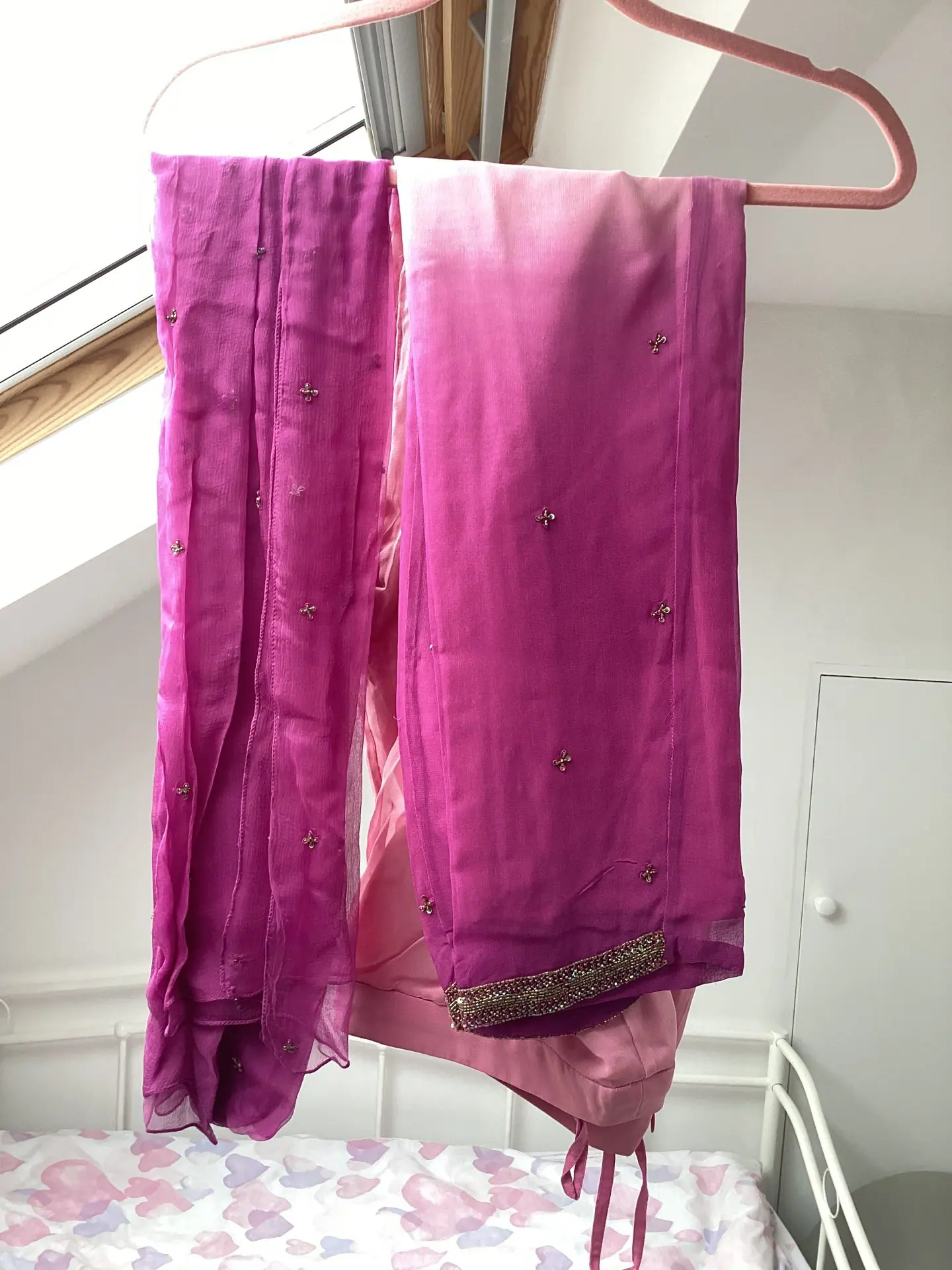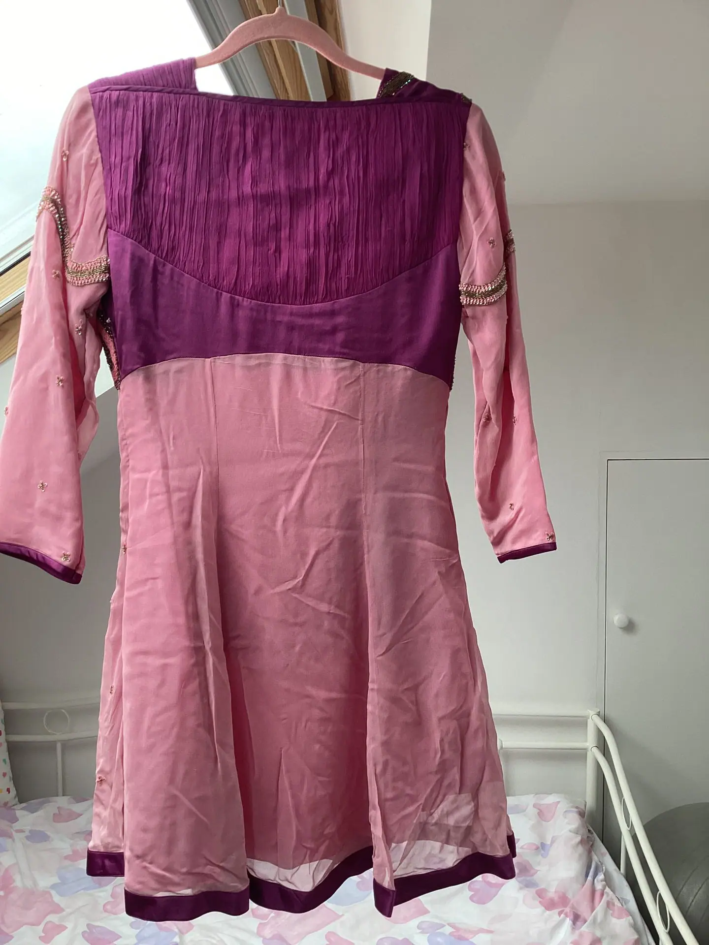New Rose pink & purple Asian fully lined dress with beadwork & embroidery.