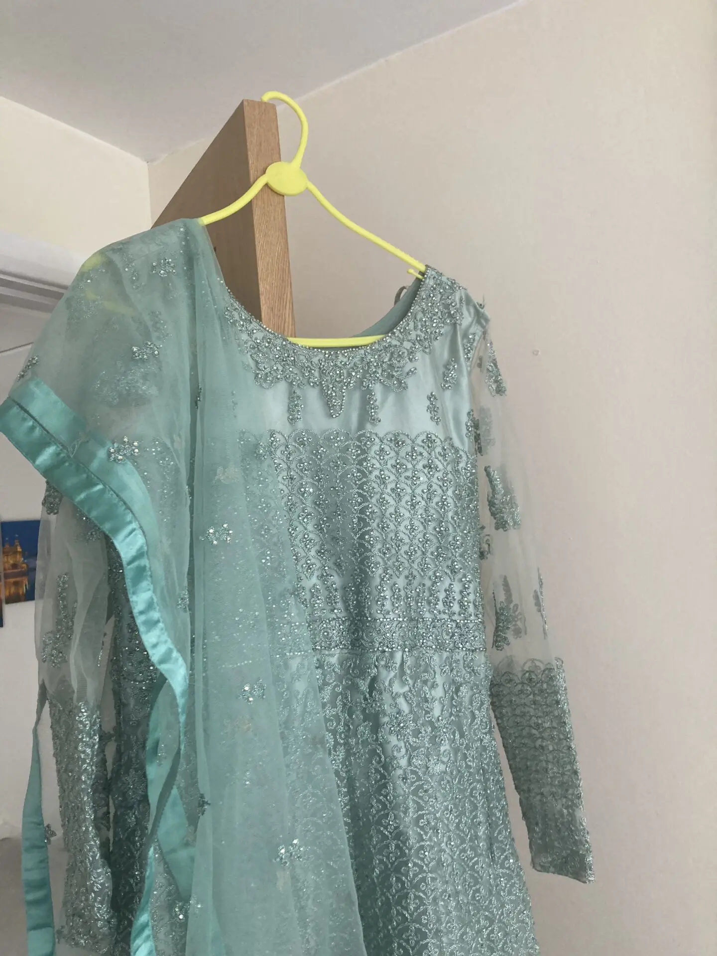 This stunning ladies Indian outfit is a must-have for any fashion-savvy woman. The beautiful green colour and intricate Gown style make it a perfect choice for any occasion. Available in size L, this outfit is designed for women who love to make a statement with their clothing. Crafted with the finest materials, this outfit is a true work of art. It features exquisite detailing that will leave you feeling confident and stylish. Whether you're attending a wedding, a party or any other special event, this Indian outfit is sure to make you stand out.