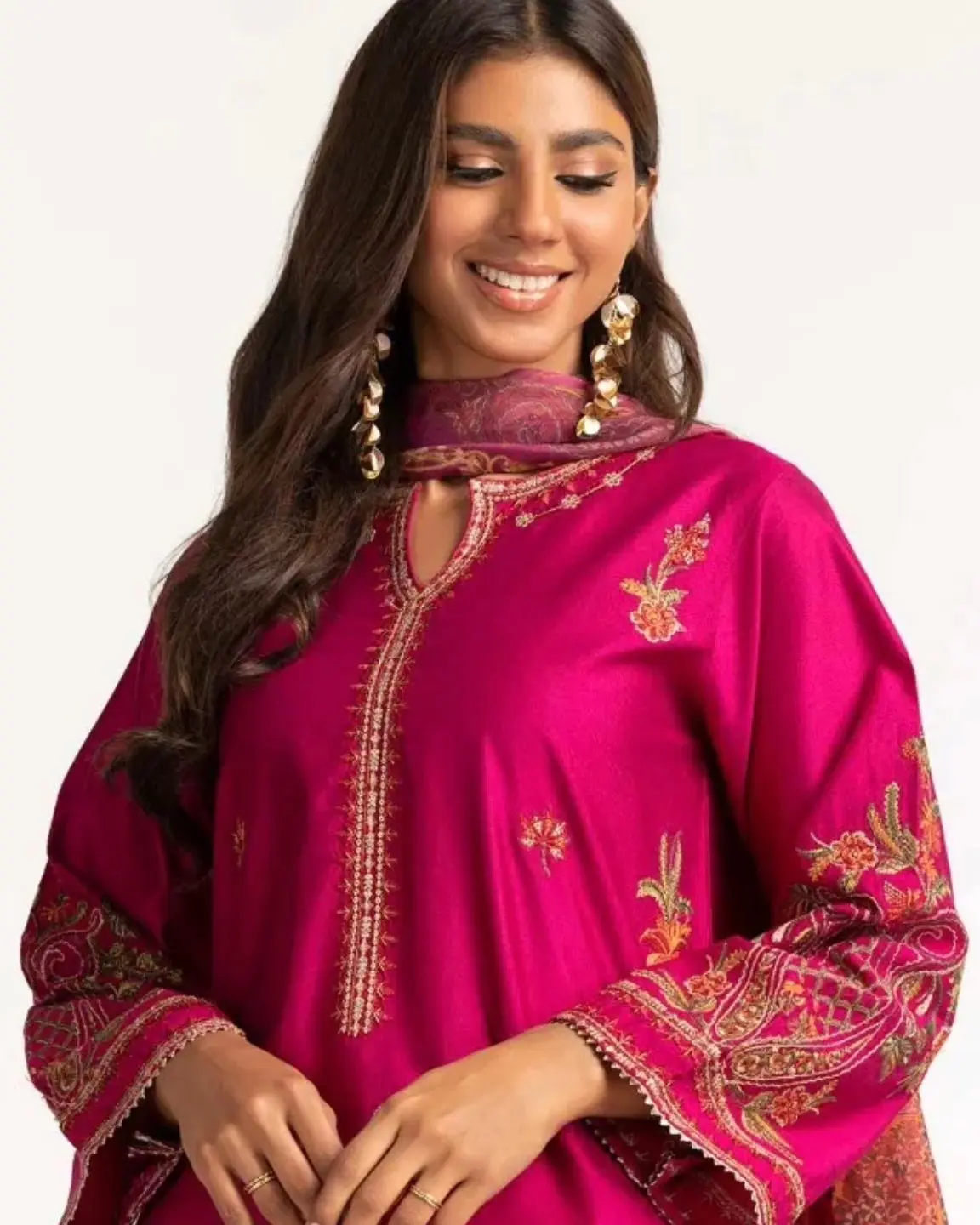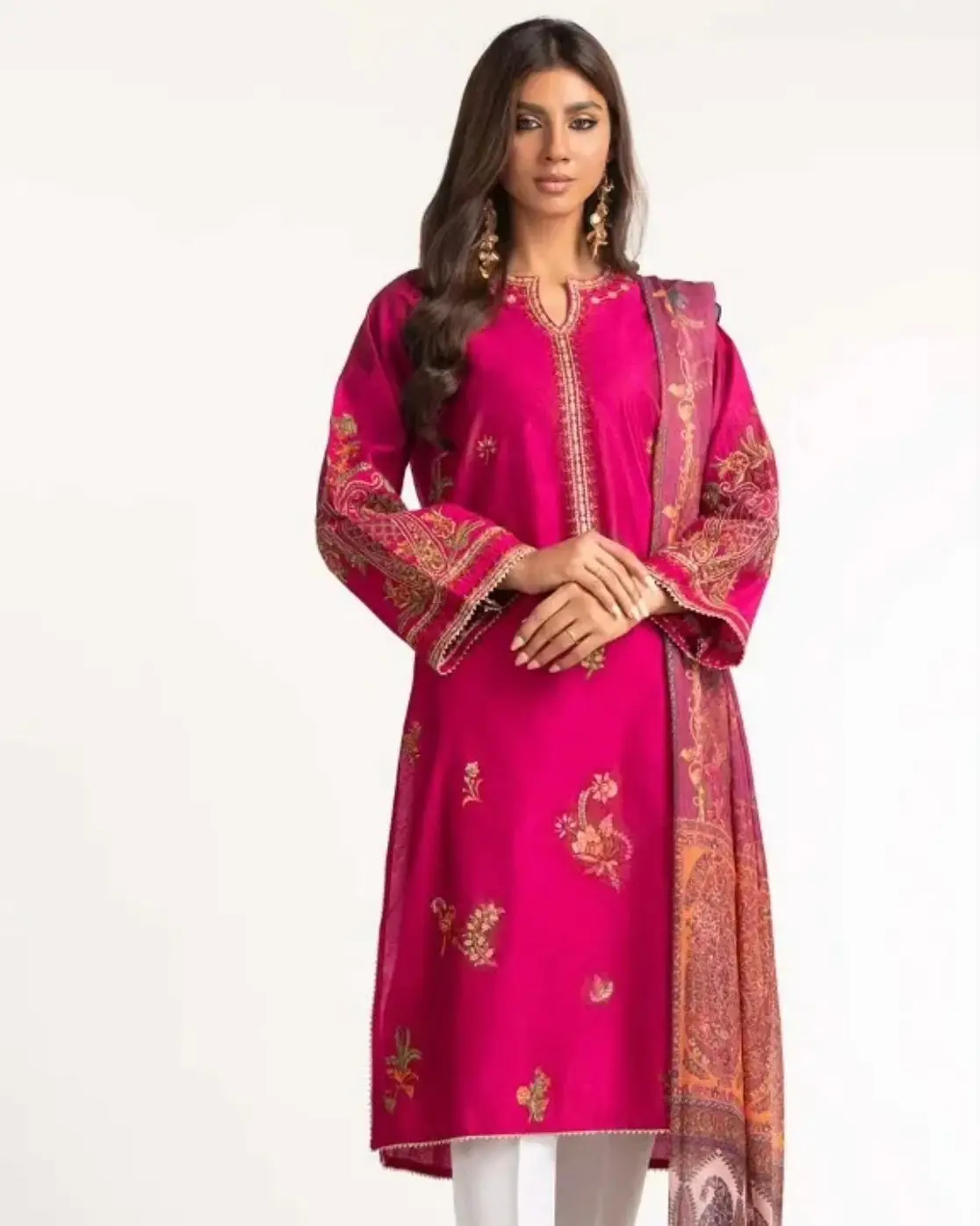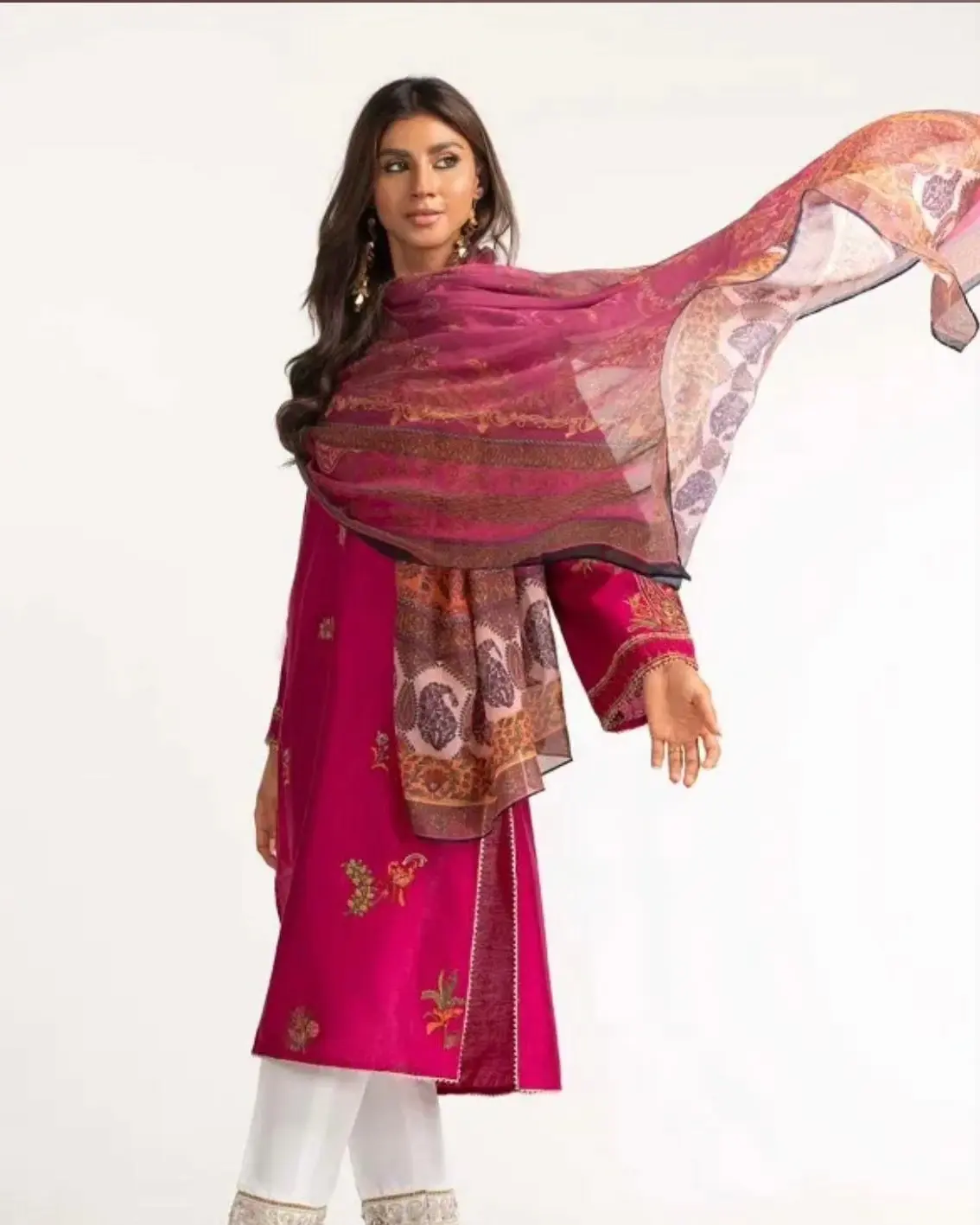It includes an embroidered shirt and chiffon dupatta.