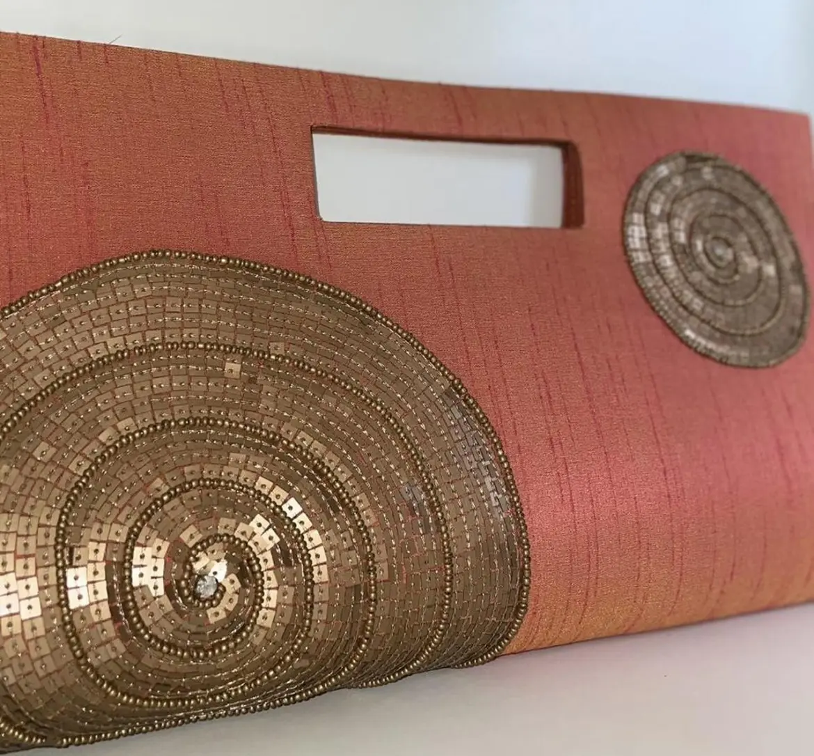 MATERIEL - ORANGE RAW SILK EMBEDDED WITH ANTIQUE GOLD EMBROIDERY