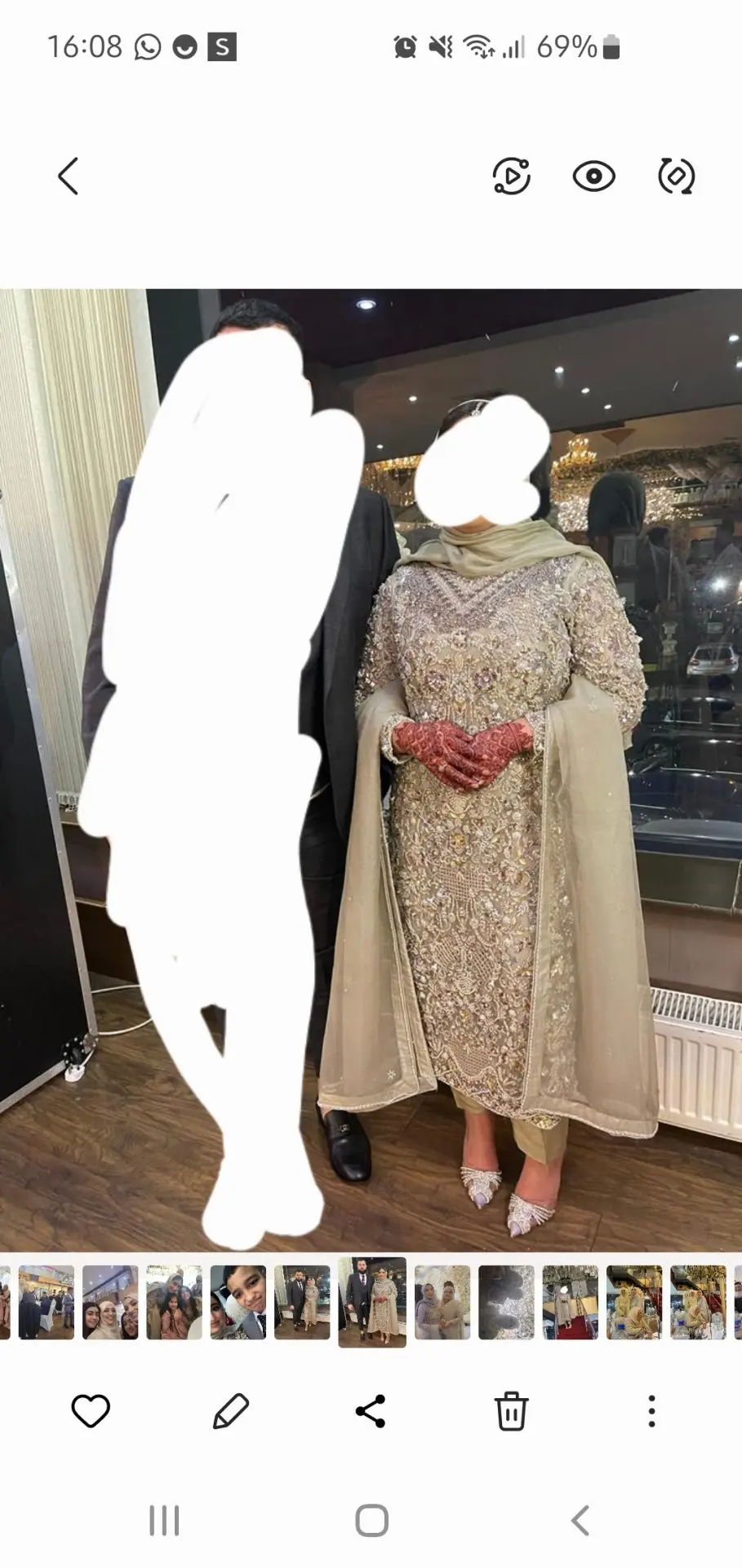 havey bridesmaid outfit . slight olive gold colour. worn for a few hours