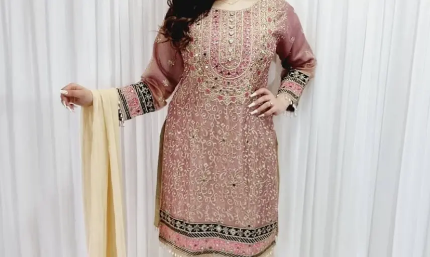 Hot pink and gold dress