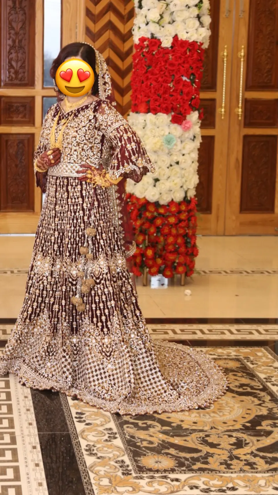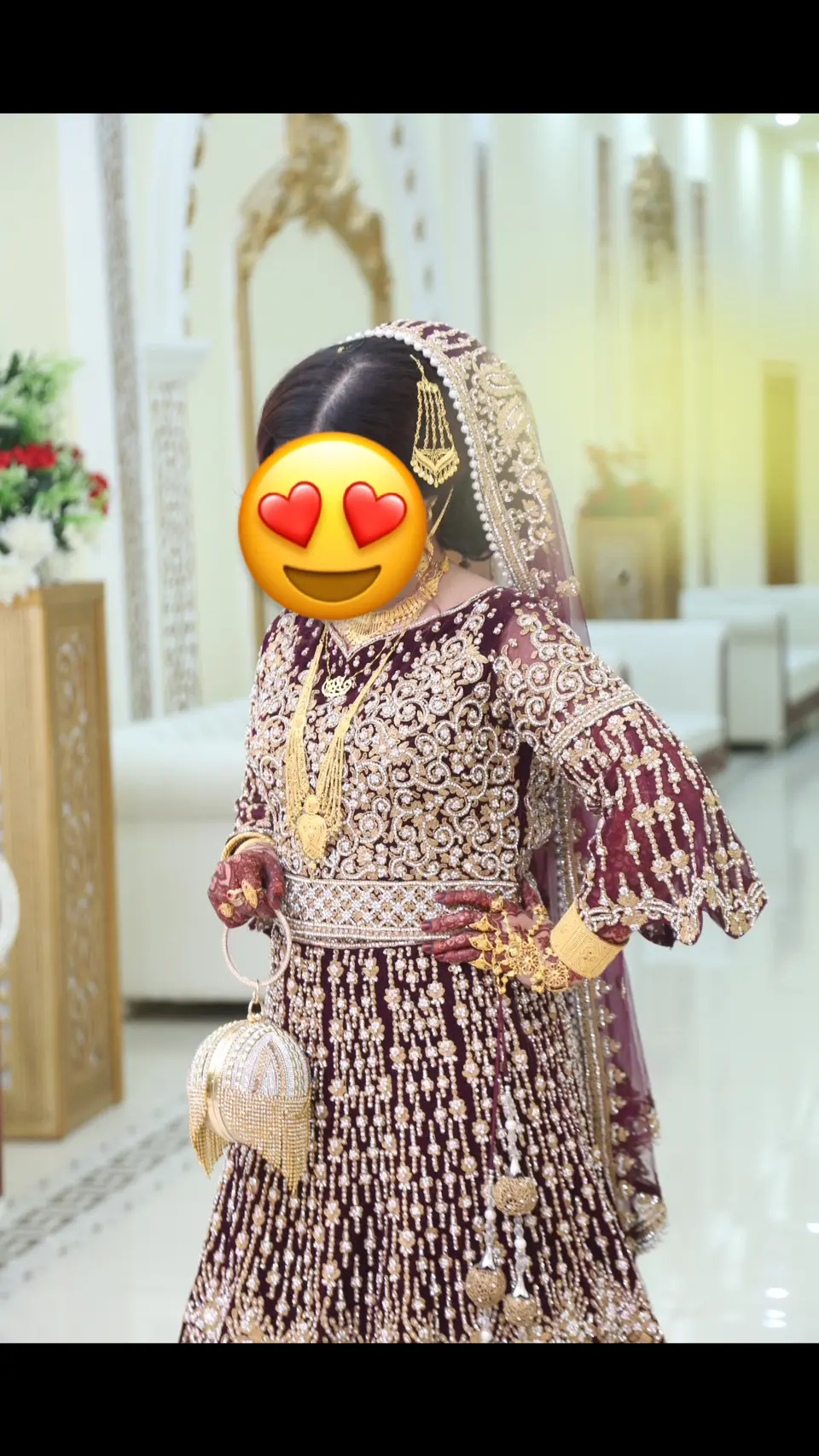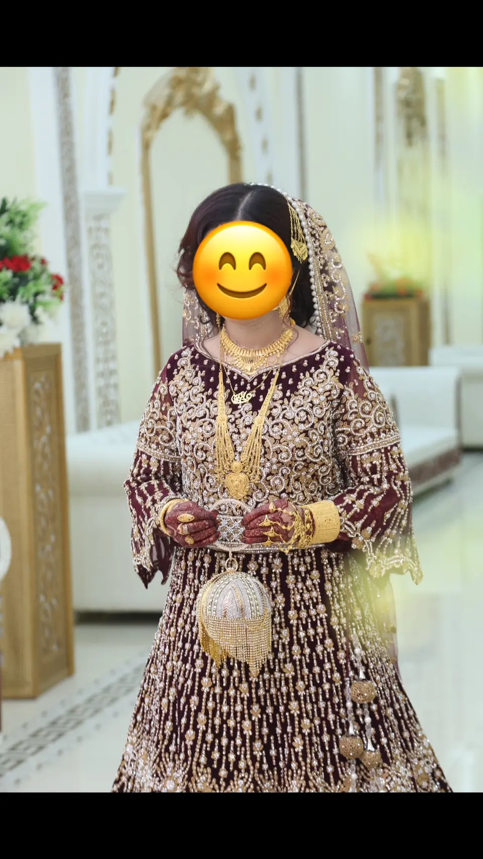 - Maroon/um velvet colour with gold & silver work