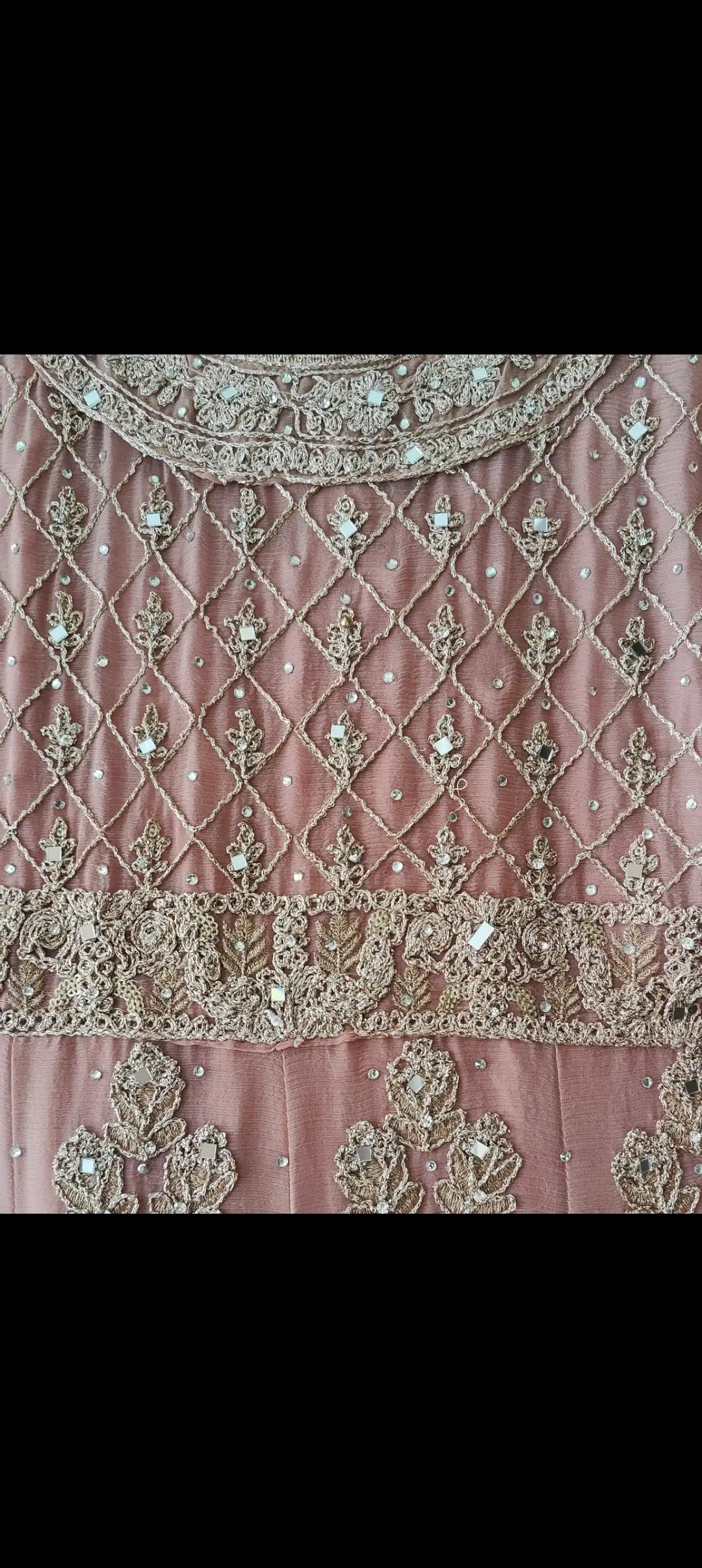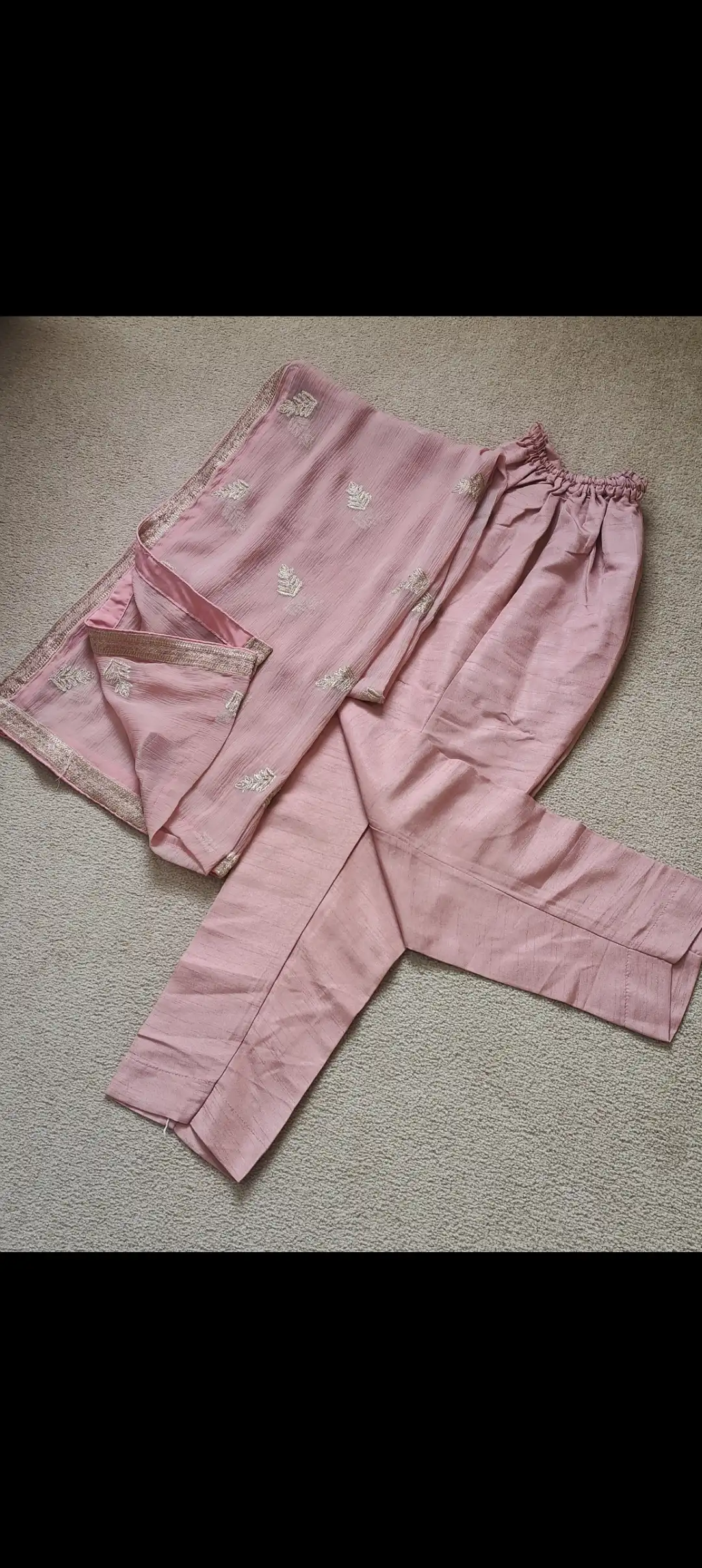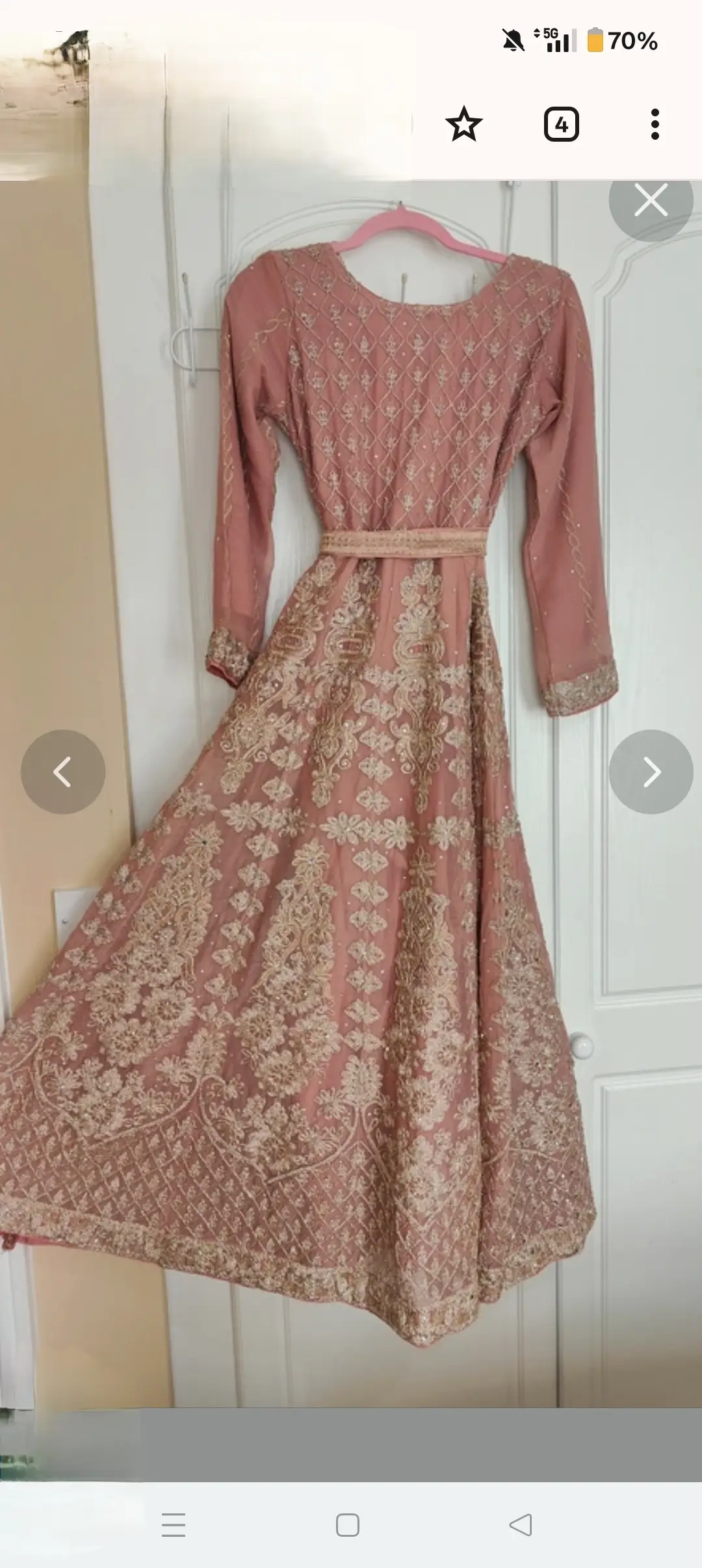 Luxury outfit, fully lined dress, not zipped. With belt and dupatta. Small /8 length would suit 5ft 5 and above. Luxury Georgette fabric. Suitable for both formal and semi formal events, the subtle dusky pink colour makes it very easy to wear. Very clean, mark free condition. Looks lovely on, makes the waist look smaller.