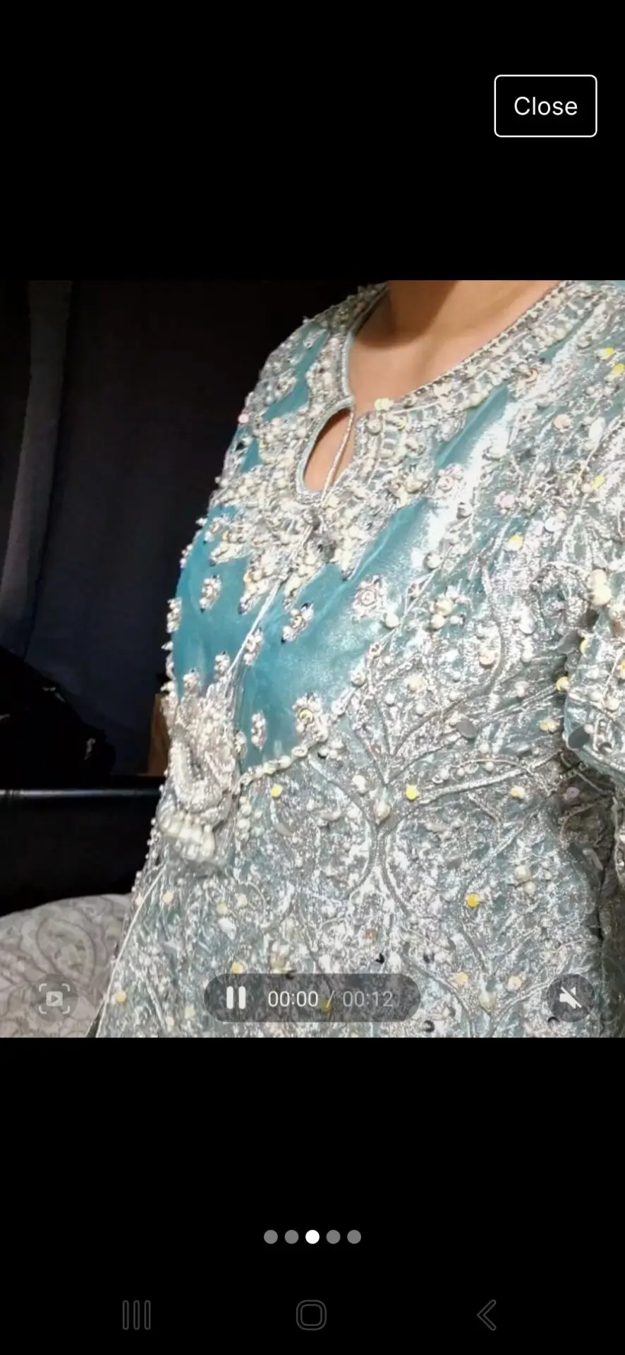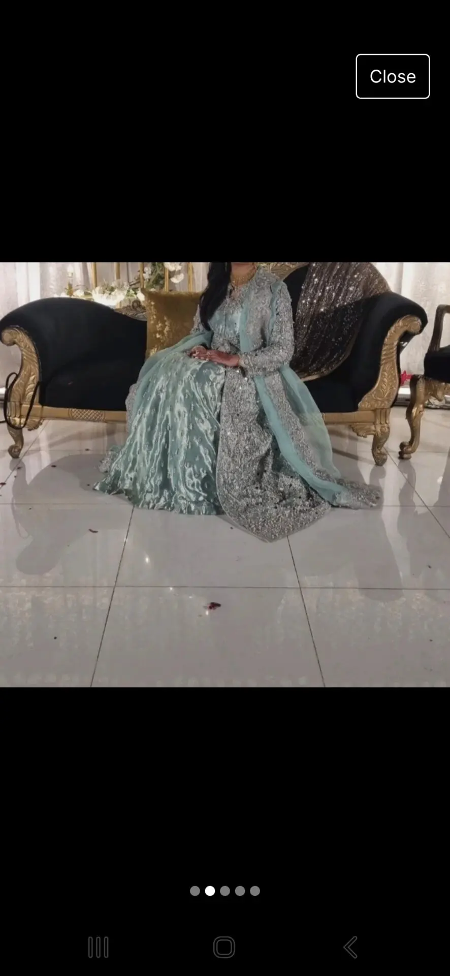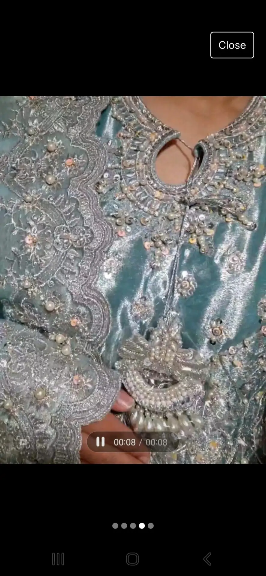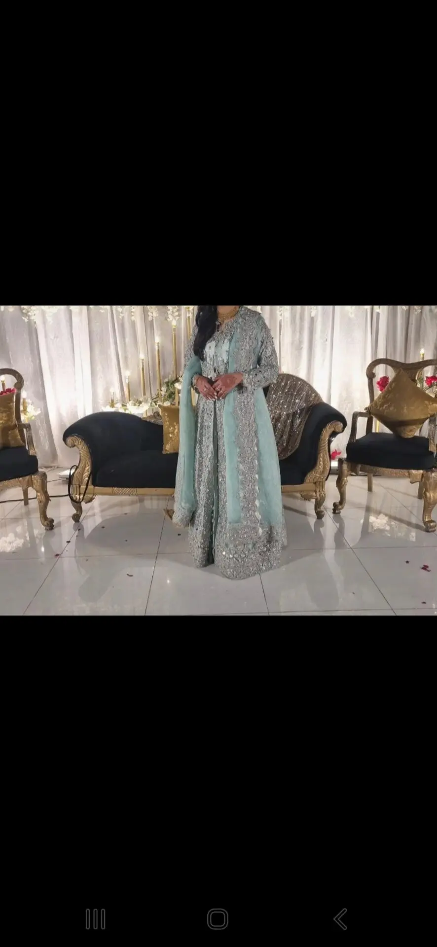 This Azure toned 4 piece stitched outfit is like a piece of the sky, including a shirt, slip, lehnga and dupatta. The fabric chosen for the shirt is pure tissue with front, back and sleeves with diamond like hand embellishments combined with tassels. The lehnga is made in pure tissue with hand embellishments of botis all over. Organza fabric is used for dupatta with sliver tilla embroided on all four sides and sequin of pearls spray all over it.