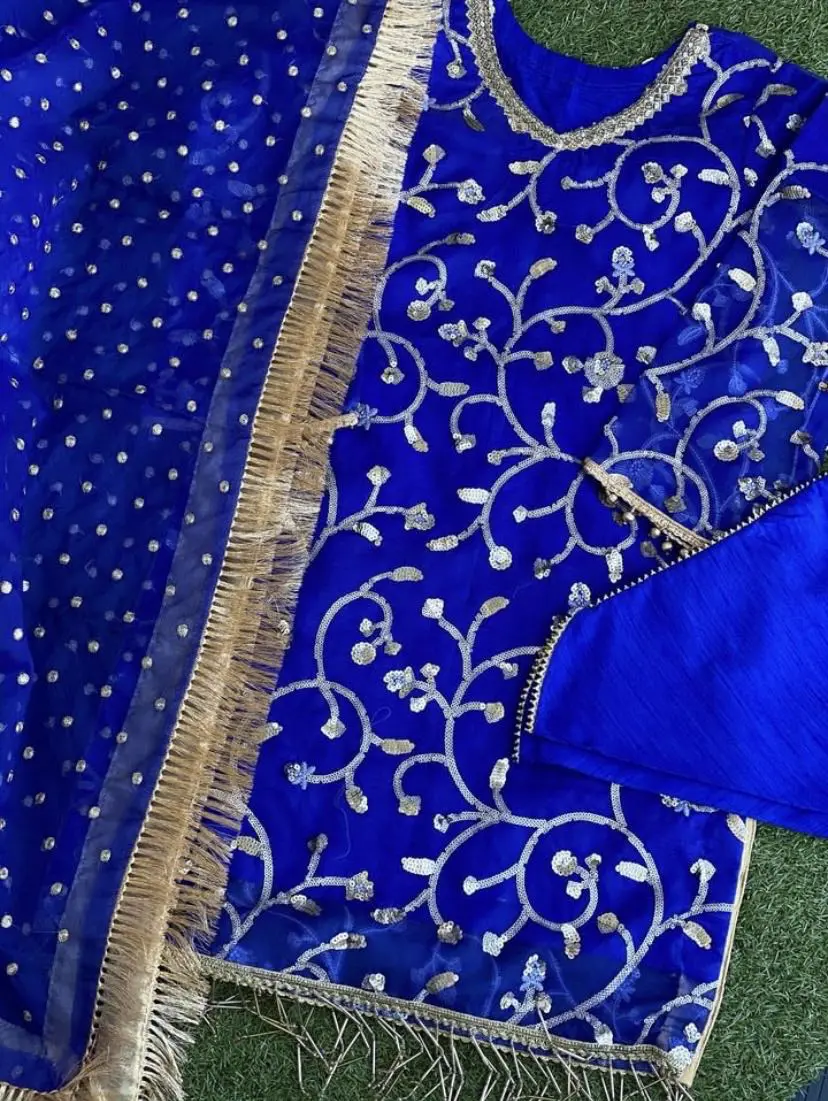 This is a gorgeous blue 3 peice salwar set with tulip salwar its brand new and I havent worn this outfit once hence why im selling as i dont want it going to waste selling for £50 as the suit is brand new not been worn at all open to £40 to.