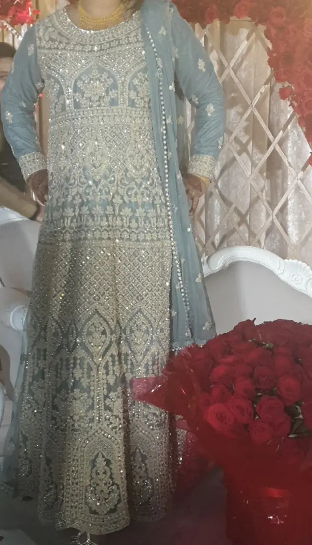 Beautiful long heavy egg blue gown elegant and classy for any occasion. worn once for a few hours excellent condition.