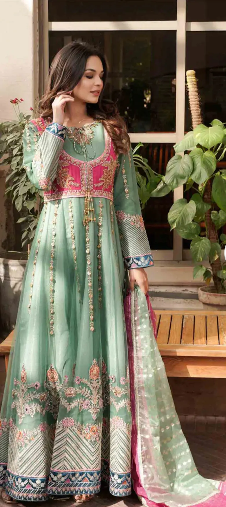 Additional Description: Floor length pishwas paired with rawsilk trouser along with dupatta its a 3pcs stitched outfit