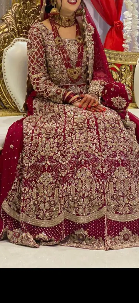 Maroon/Ruby red embellished lengha/dress