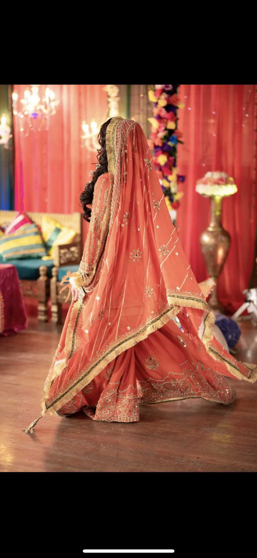 Custom made pakistani mehndi outfit for my mehndi, only wore once for a few hours on my mehndi still looks brand new, I originally bought for £850. All the designs and details are hand made. Very elegant and something different for you to wear on your mehndi. Price can be negotiated so not to worry. Will fit a UK size 8/10 does have extra material to open the kameez up for your self. The matching floral bracelets can be provided with it