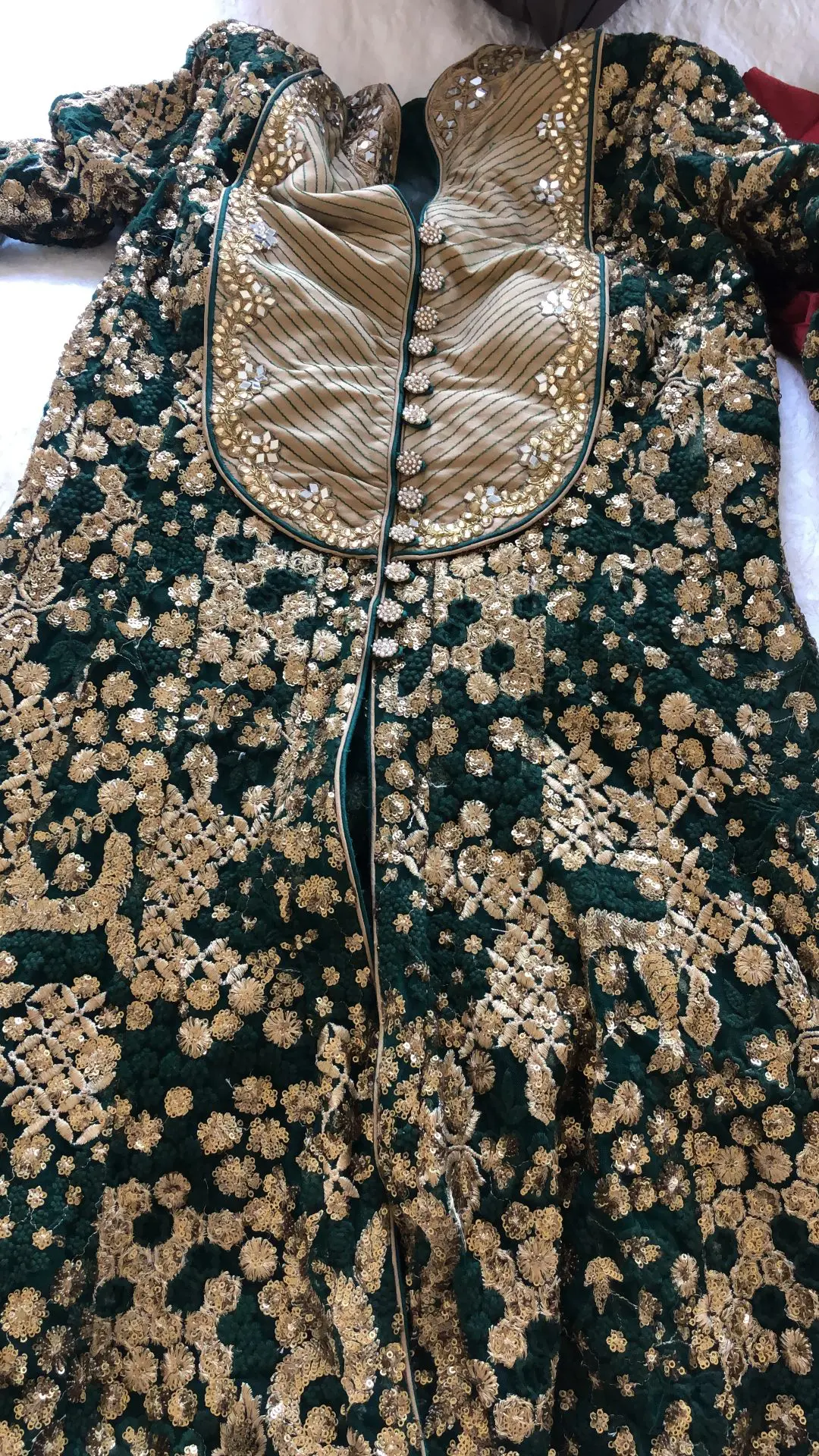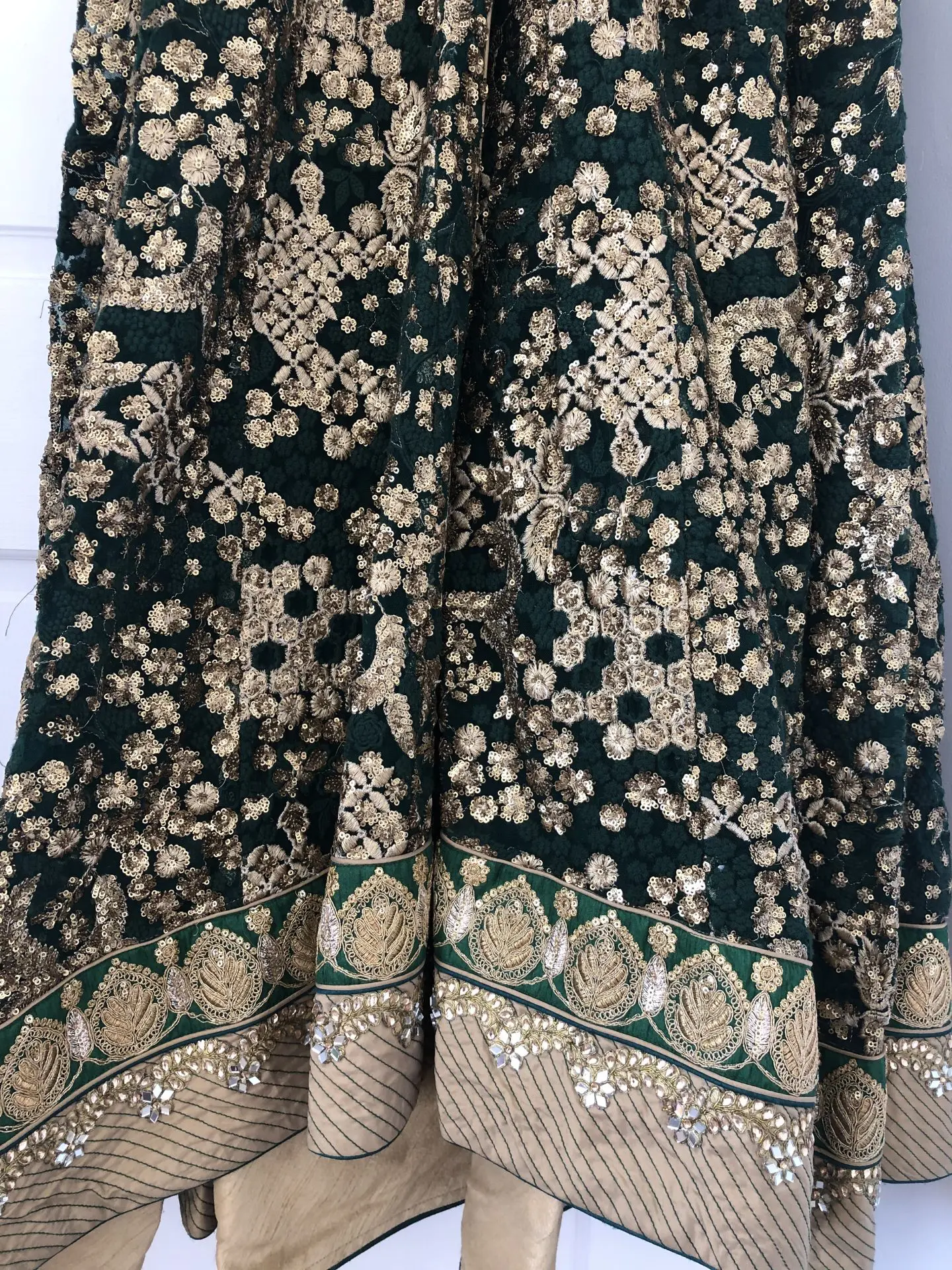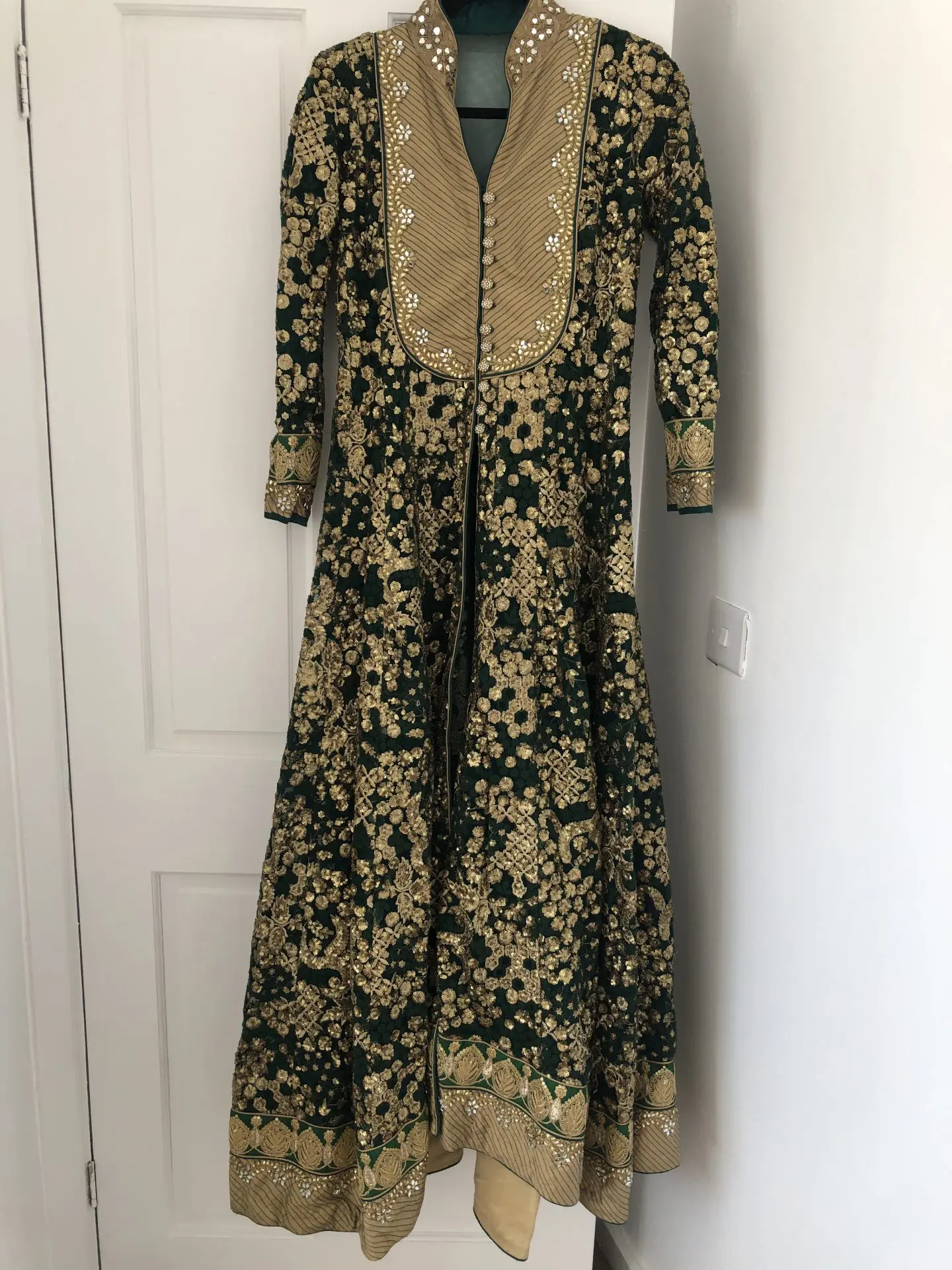 Beautiful green fully embroidered long dress with a full skirt, in excellent condition, only worn for 2 hours, will fit size 8-10