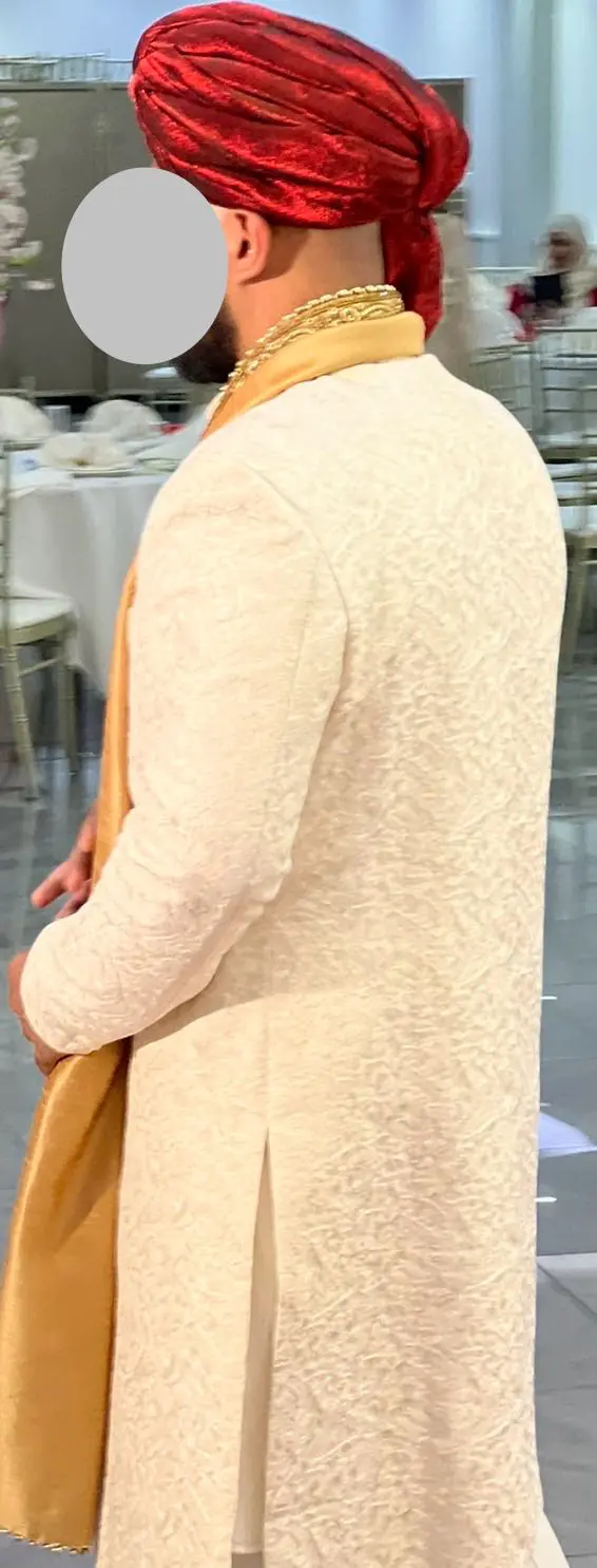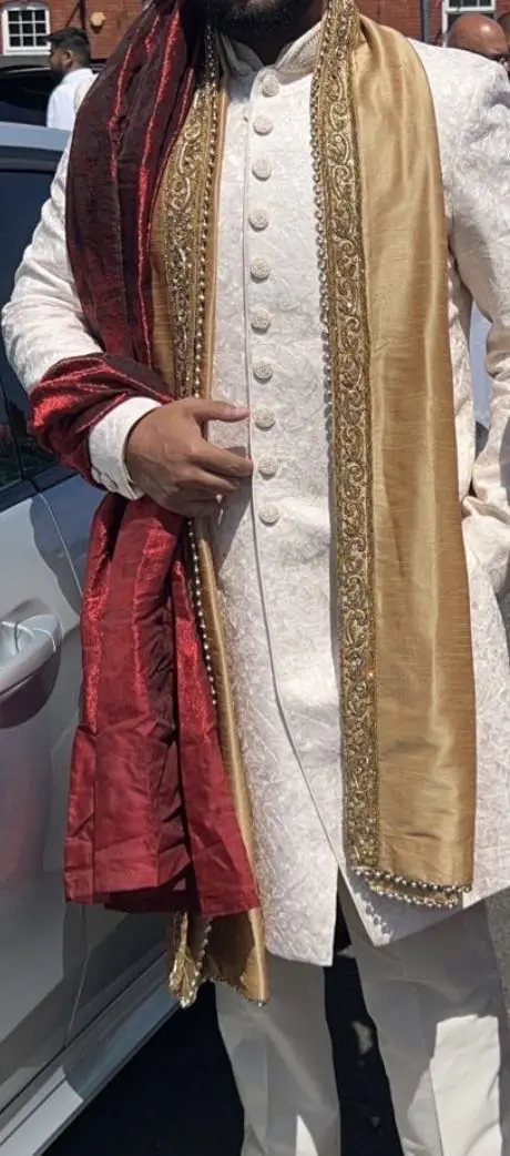 Mens Shirvani suit January 1, 2024 Id: 29979 Mens Shirvani suit £500 Bookmark Share Share This Listing Description: Worn for 5 hours on wedding day Like new Gold scarf included Without defect Has been dry cleaned Contact Information Phone: +4407872022536 categories: Men Address: London Listing Tags: #wedding Modern Asian #weddingdress #asiandress Nikkah outfit #asianoutfit Sherwani #asianbridalweddingdress #menwear #bridalgown #shawl #asiangown #pakistani #gown #groomstyle #weddinggown Asian Groom Gold beading #asian Luxury Post New Review Cancel replyYou must be logged in to post a comment.