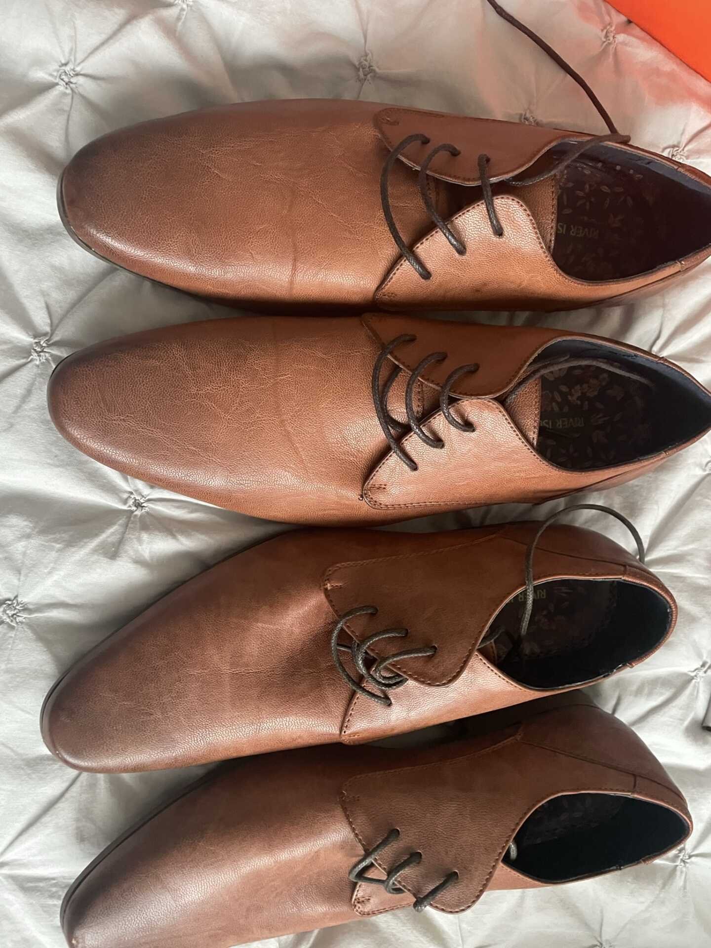 there are 2 suits available in the colour black and also 2 shoes available in the colour brown. sizes are 11 and 9. £60 each for the shoes