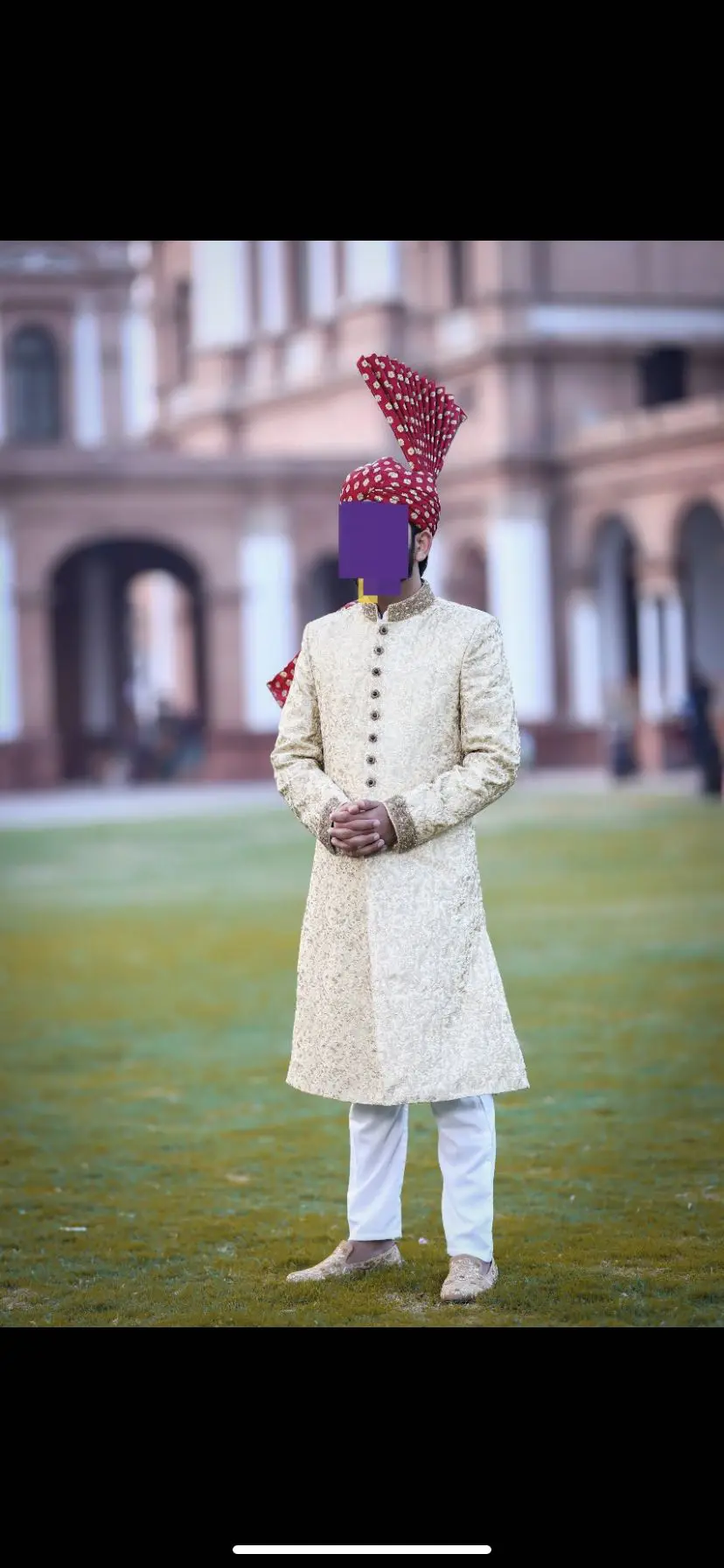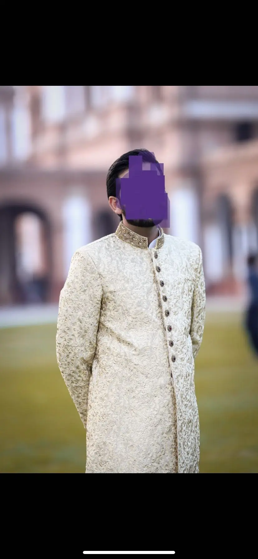 Mens designer wedding shirwani. Height 5’10 and size medium. This includes the khussa kola and shirwani. Perfect condition only worn once for 3 hours during the ceremony. Please let me know if you have any questions. This can be posted or collected!