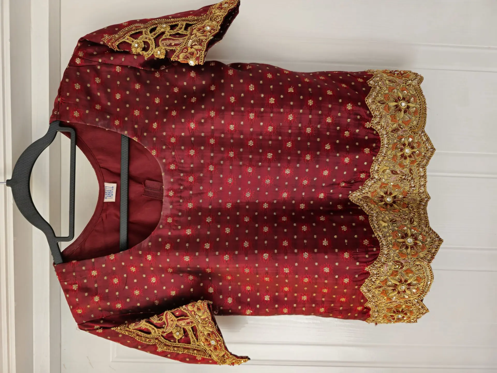 Handcrafted with delicate embroidery and cut work that showcases traditional craftsmanship.