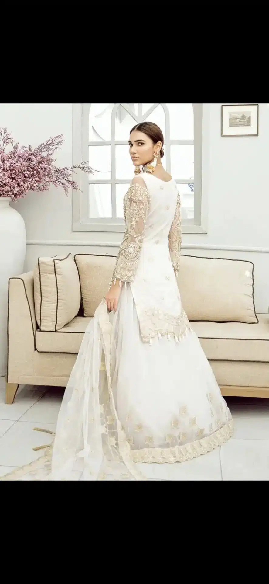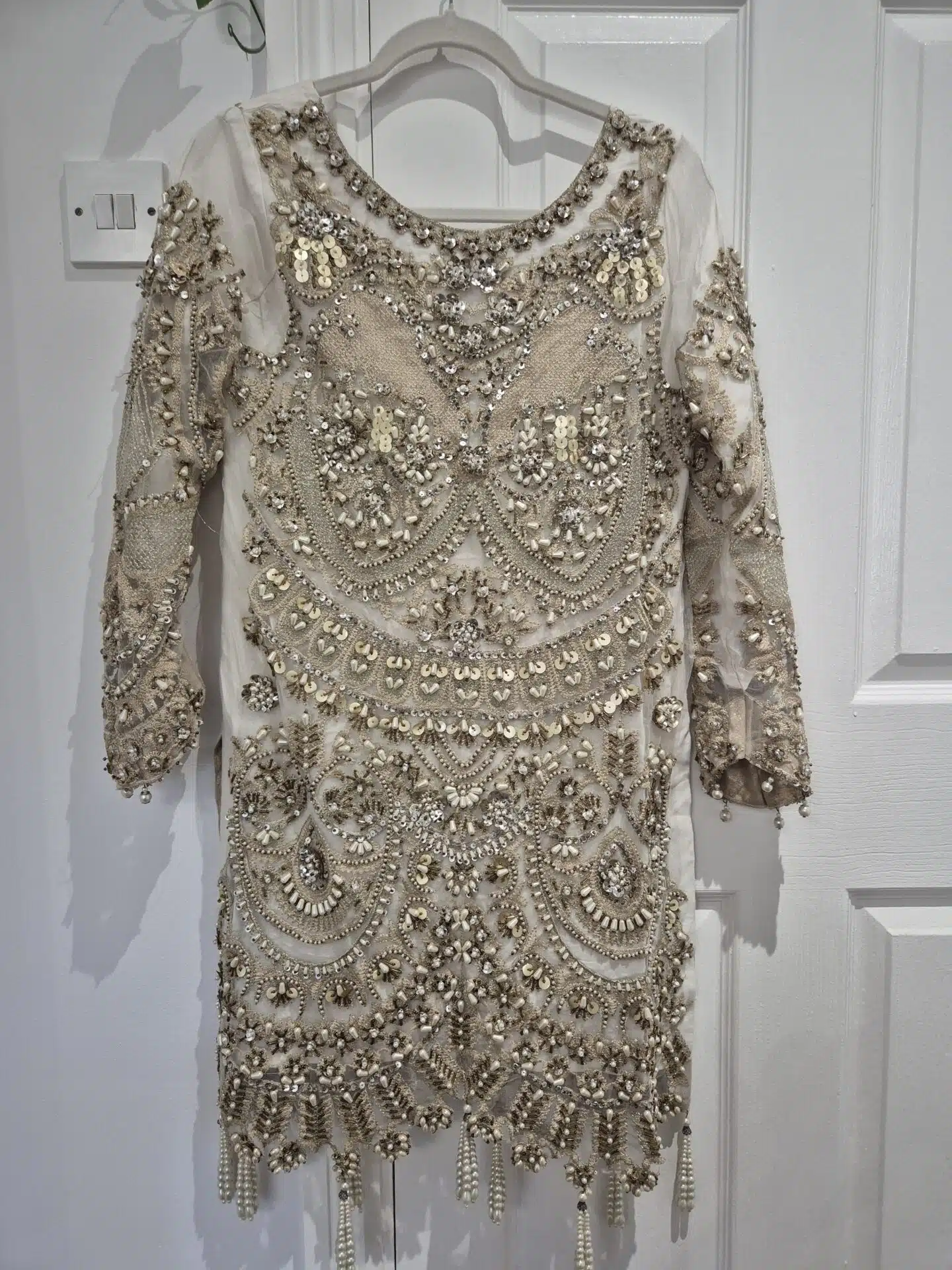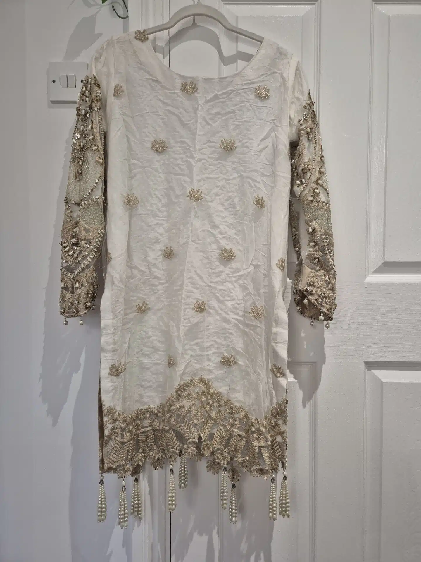 Hand embellished embroidered net lengha with long Kameez. Size S/10