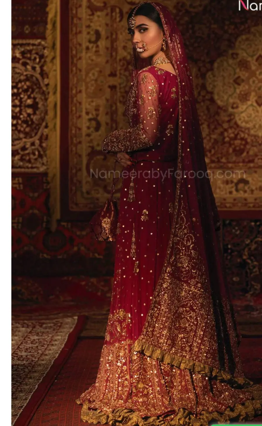 Red Lehenga Dress Nameera By Farooq design- tailor made in Lahore, Pakistan.