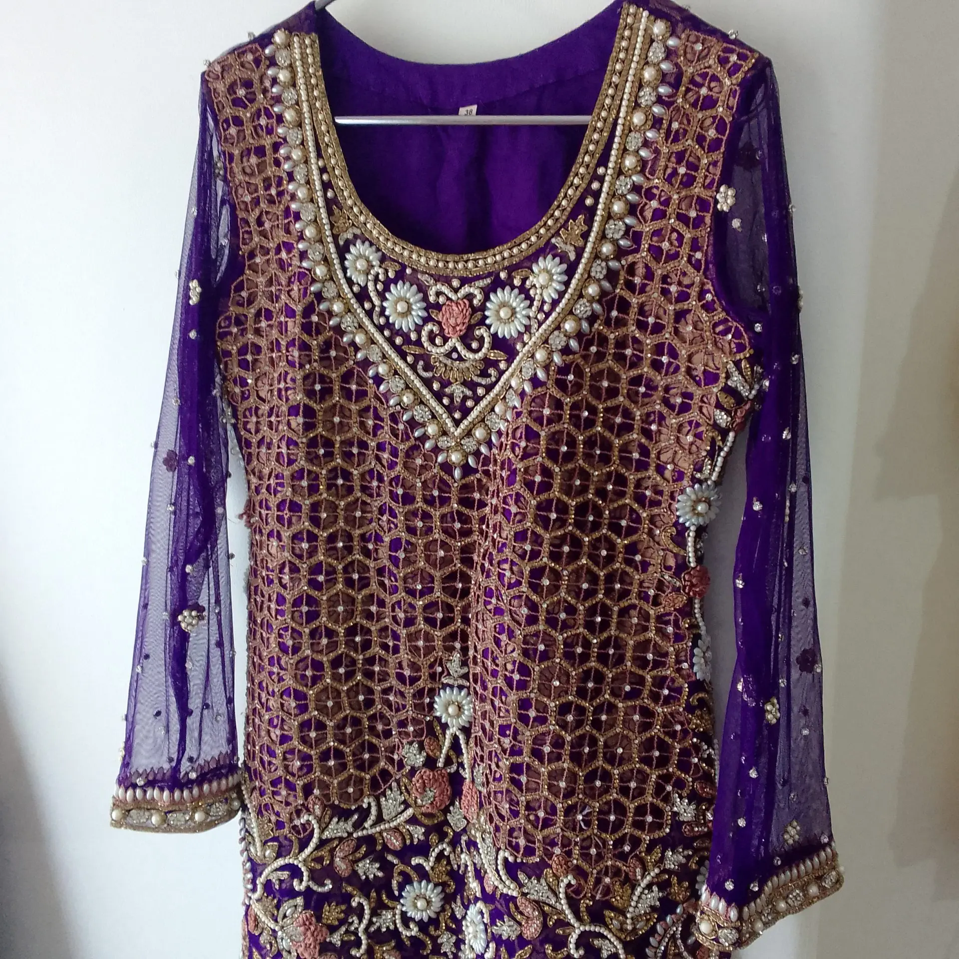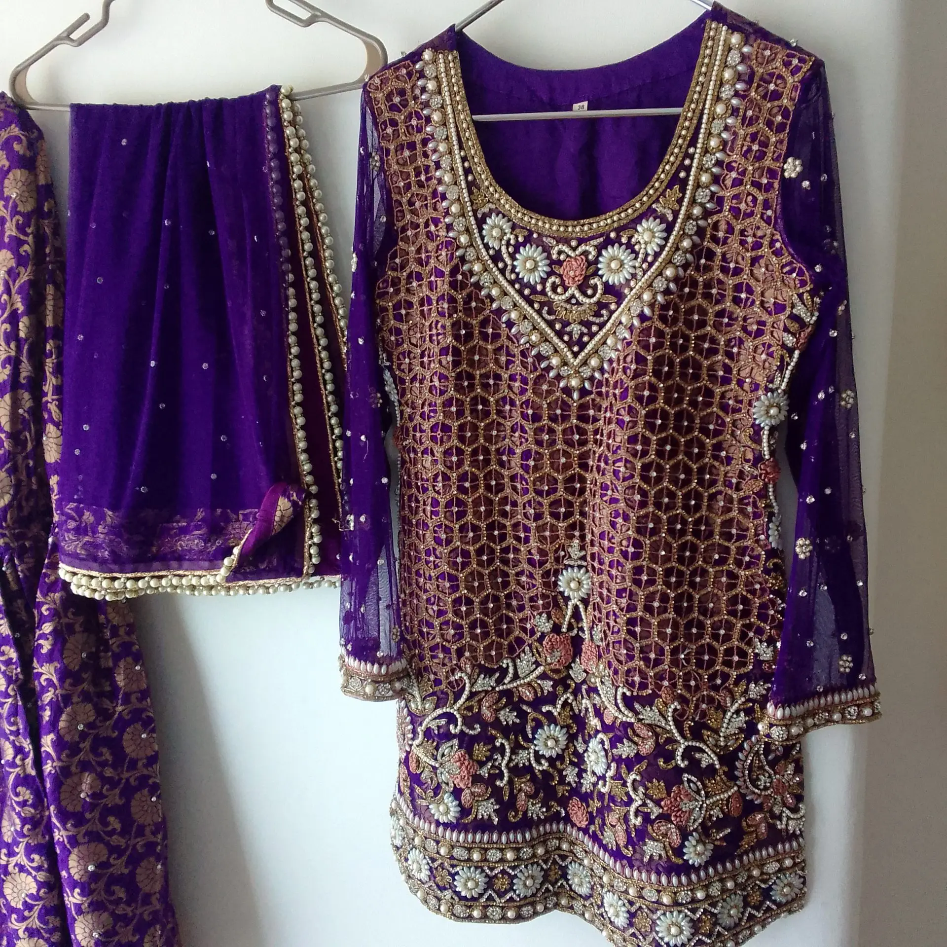 ASIAN LADIES 3 PIECE SUIT - COMPRISES KAMEEZ,GHARARA AND DUPATTA - STUNNING EMBROIDERY - MAUVE/LILAC IN COLOUR - SIZE IS SMALL/MEDIUM - PAID £275 FOR THE SUIT - I AM SELLING FOR ONLY £200 - FREE DELIVERY AND ALL OFFERS WELCOMED