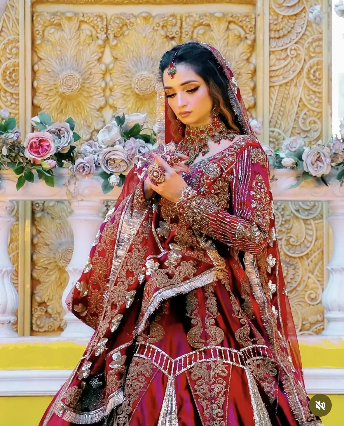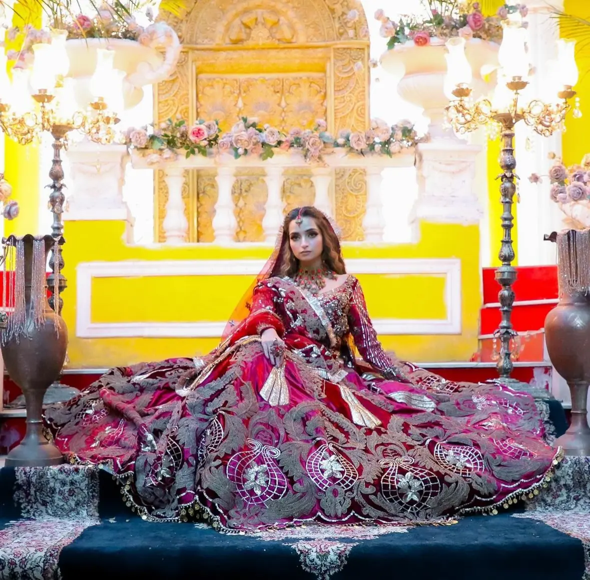 •Dupatta: The dupatta is made of soft net/chiffon with matching embroidered borders, enhancing the bridal look with a perfect balance of grandeur and grace.