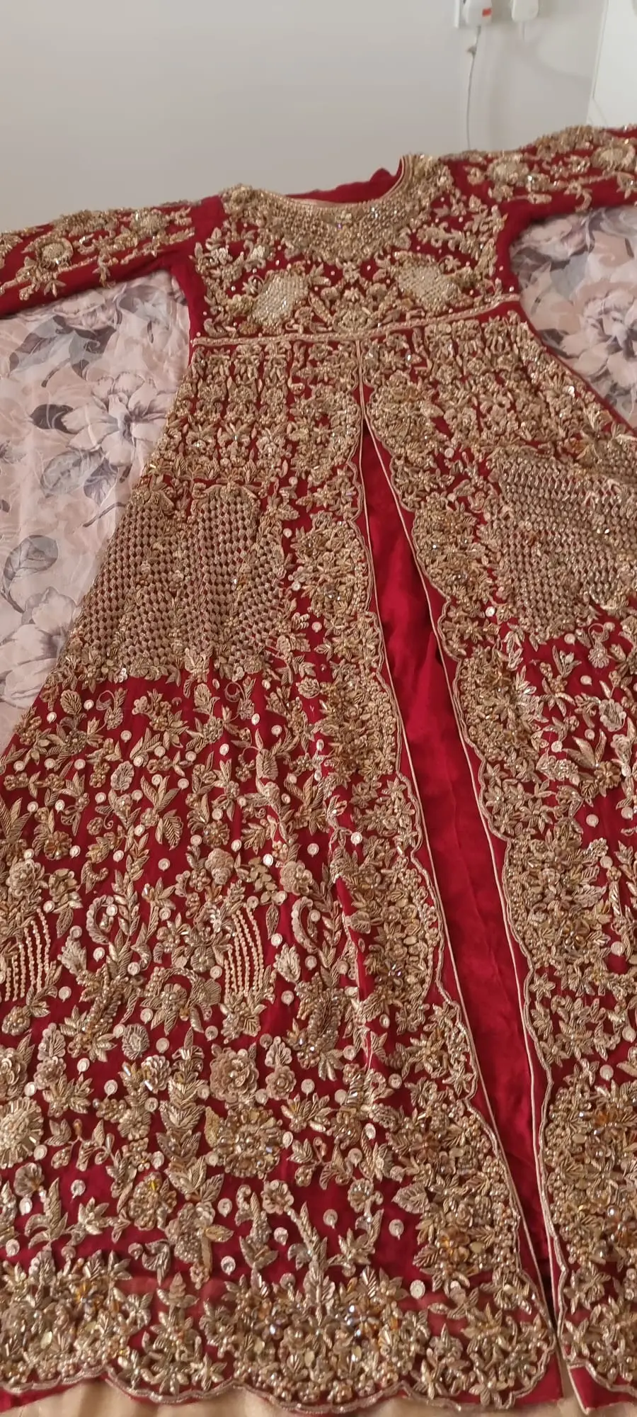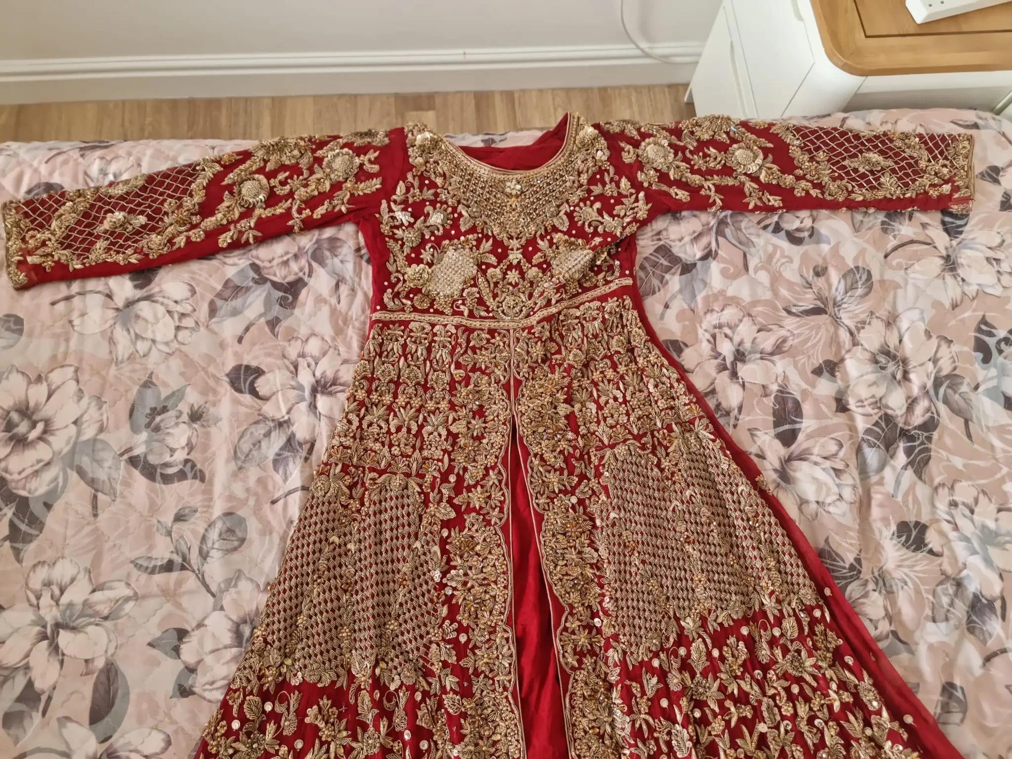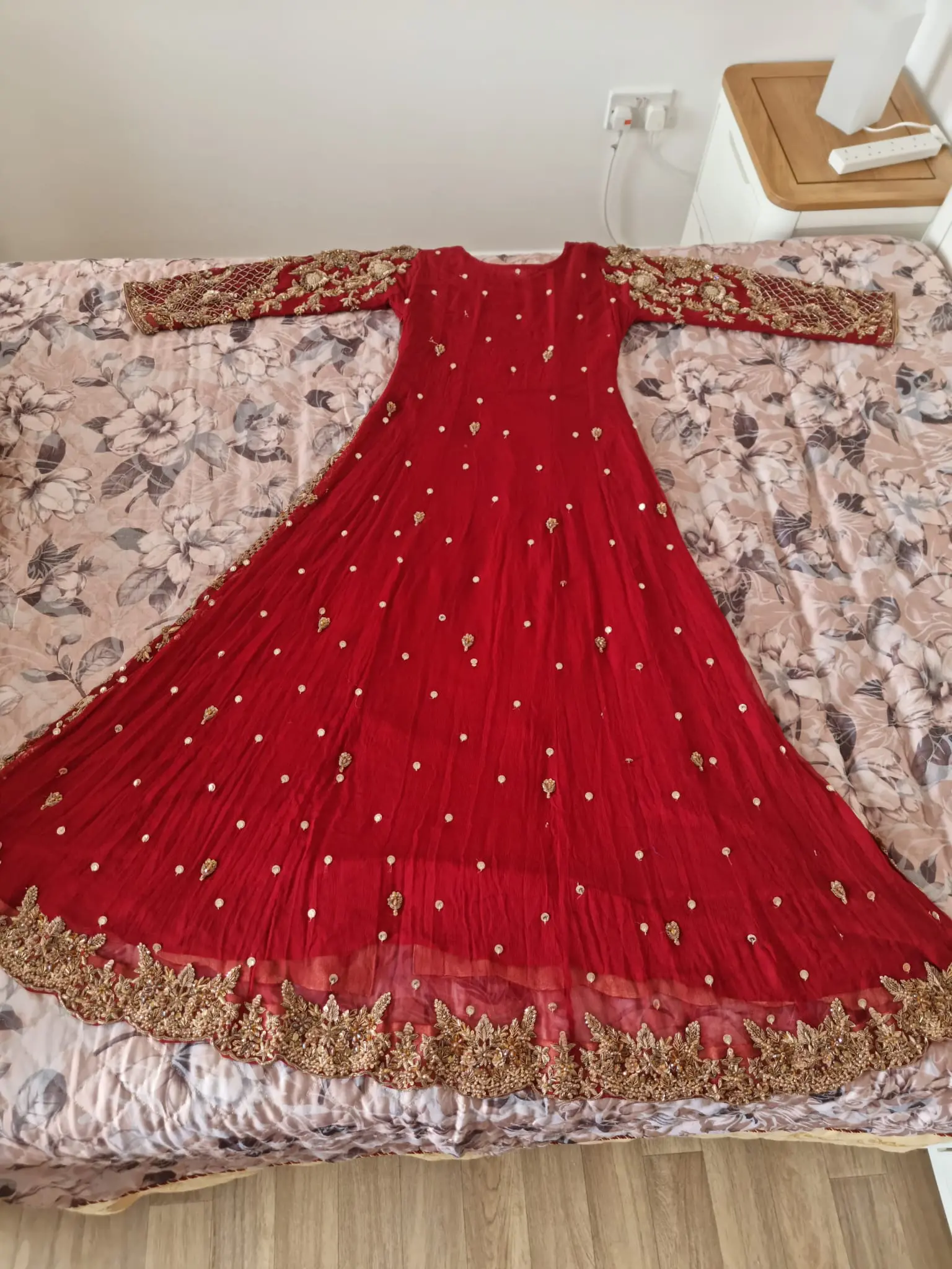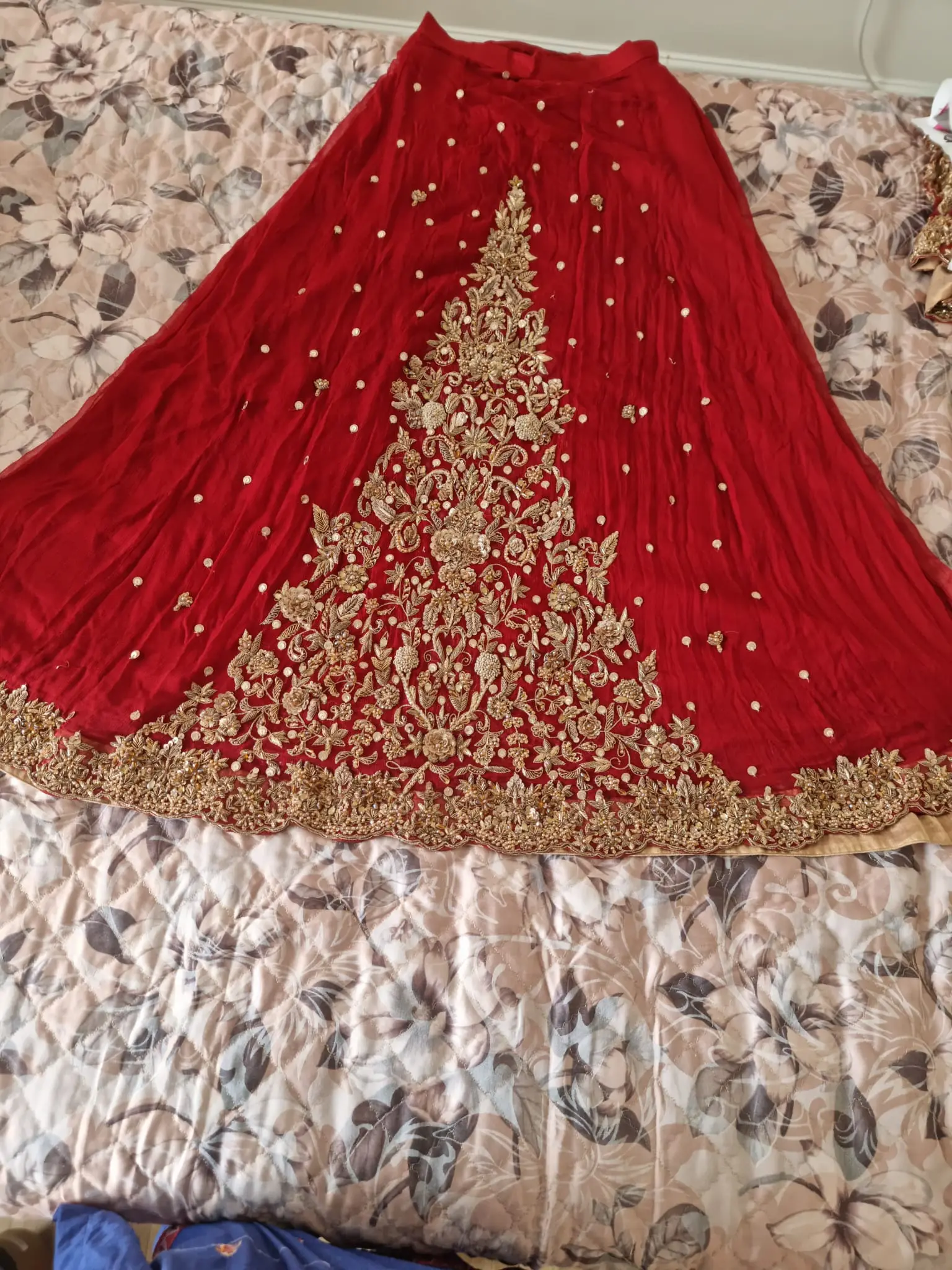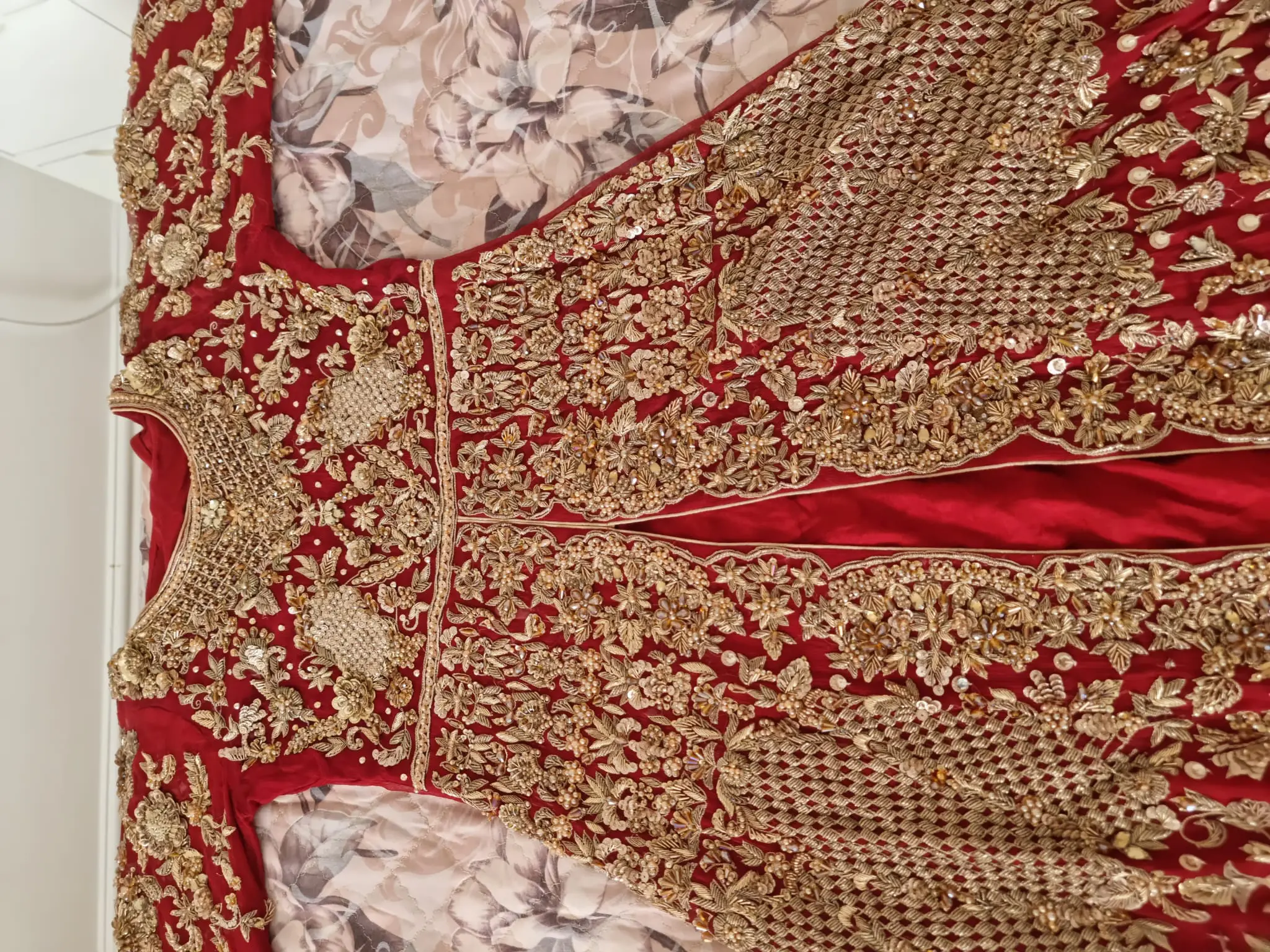 Beautiful bridal wedding lehnga only work for a few hours in perfect condition. Beautiful embroidered red. Comes with a beautiful dupatta perfect for any bride who wants to look stunning on her wedding day. Size Small. Comes with a pouch too