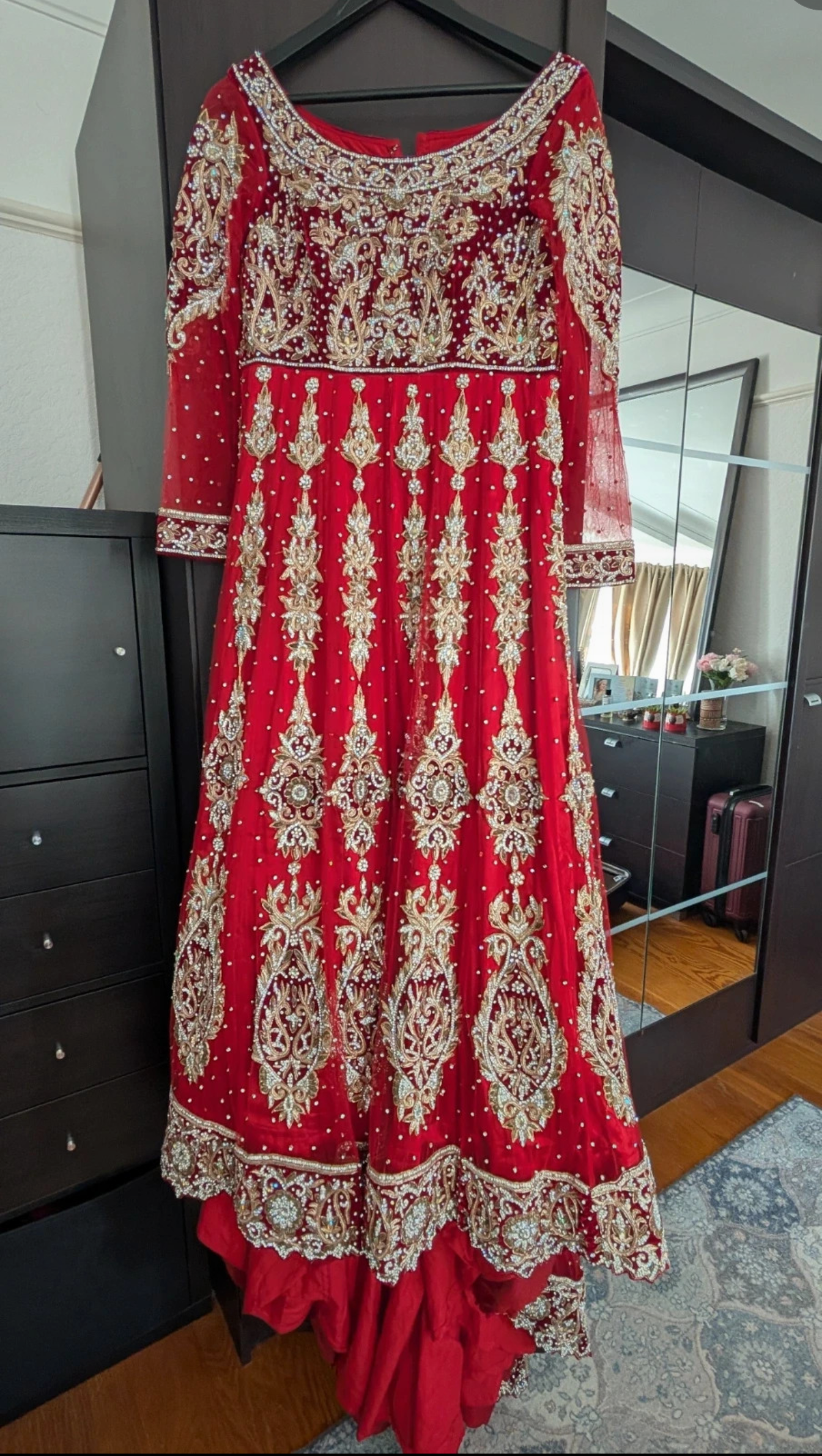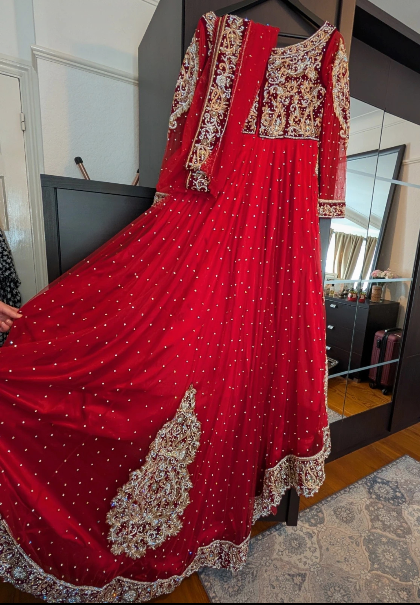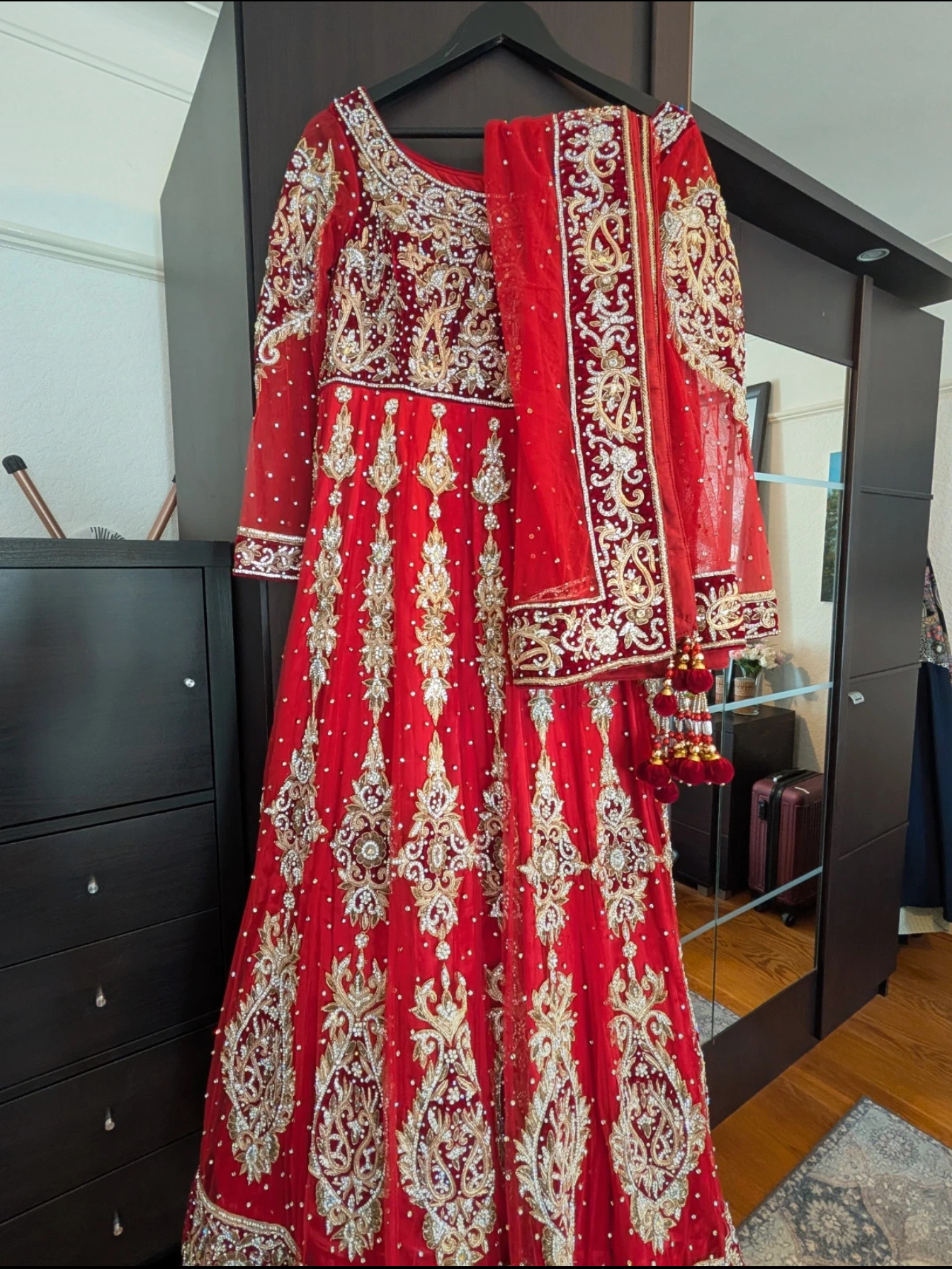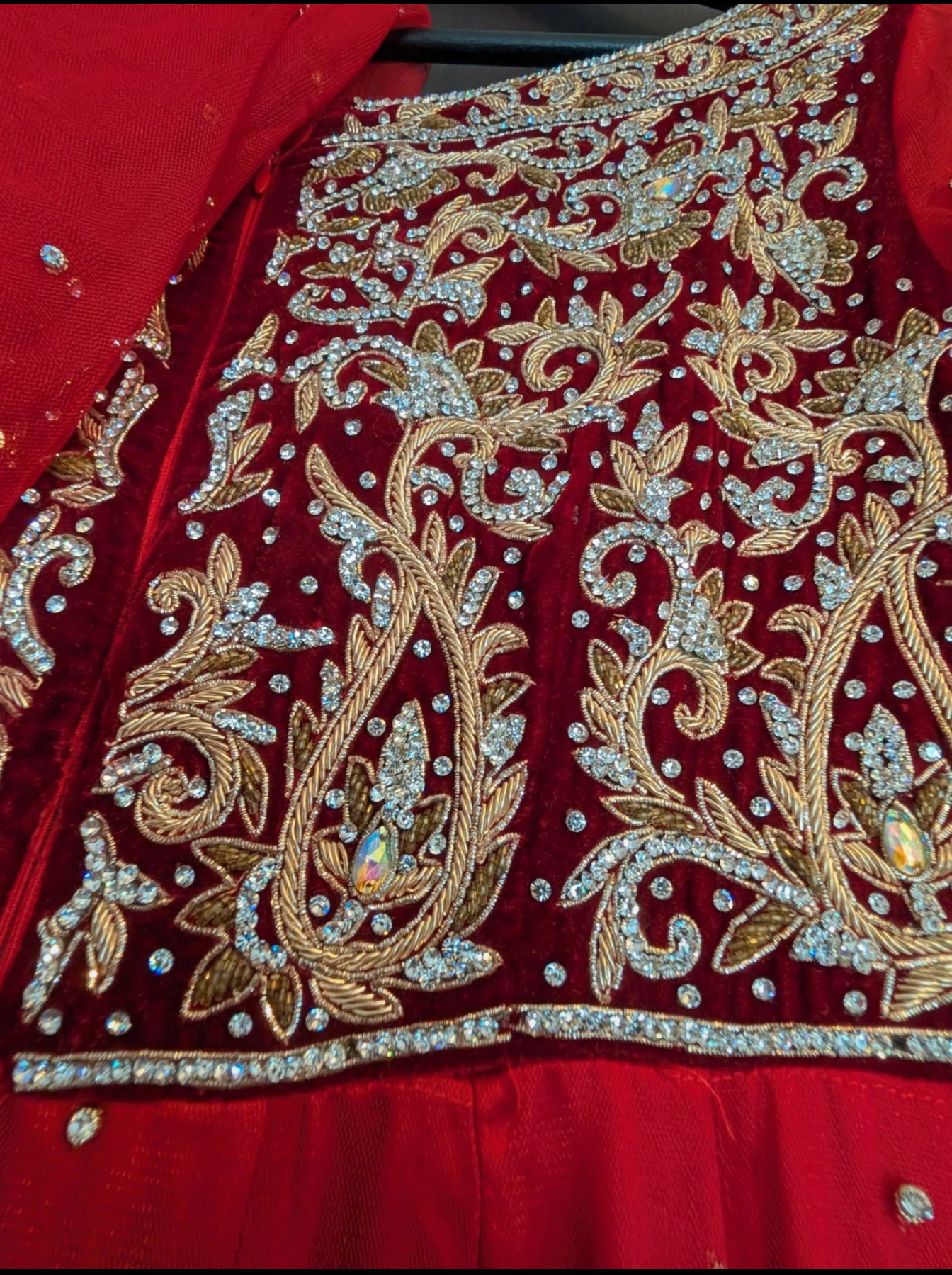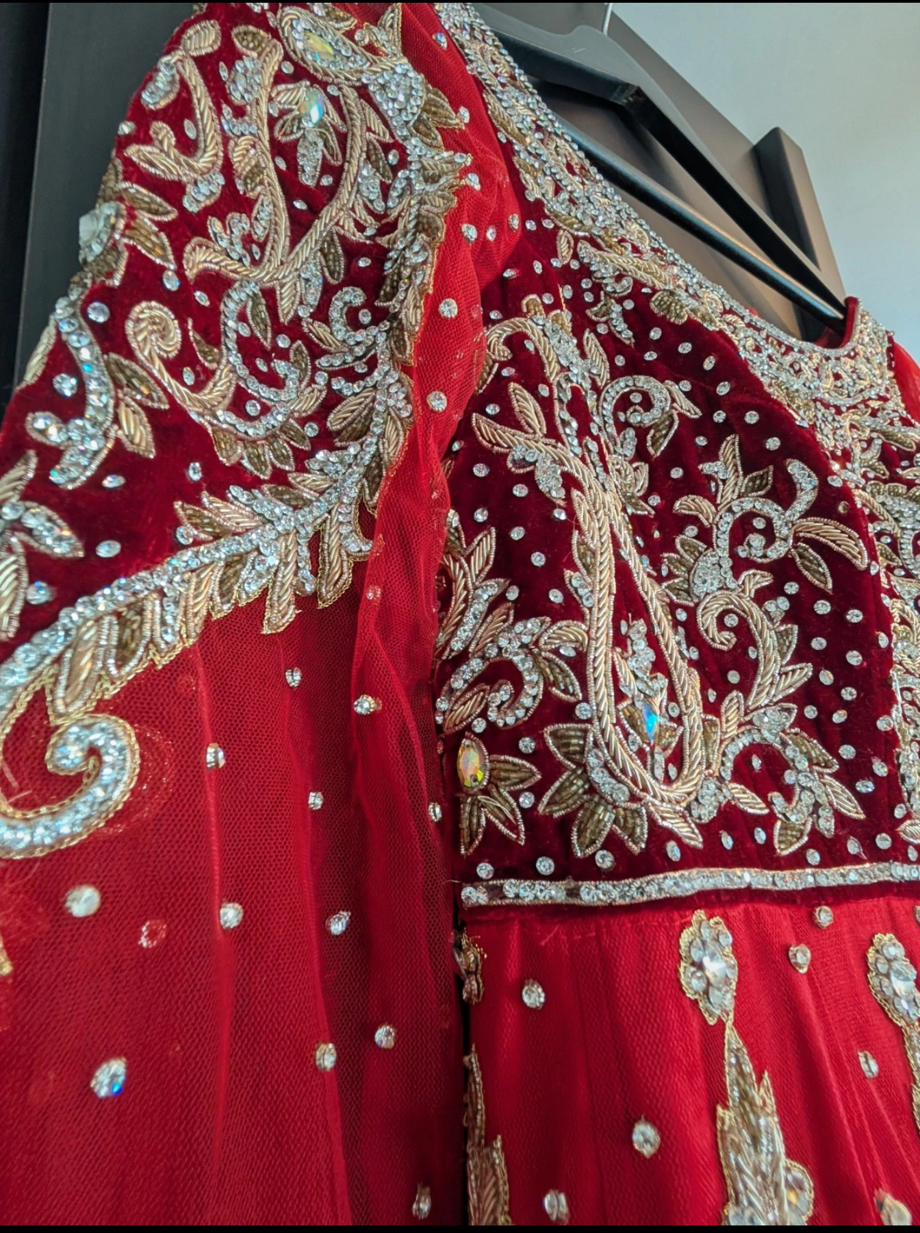 Fabric: Velvet bodice, net sleeves & dupatta, satin inner lining