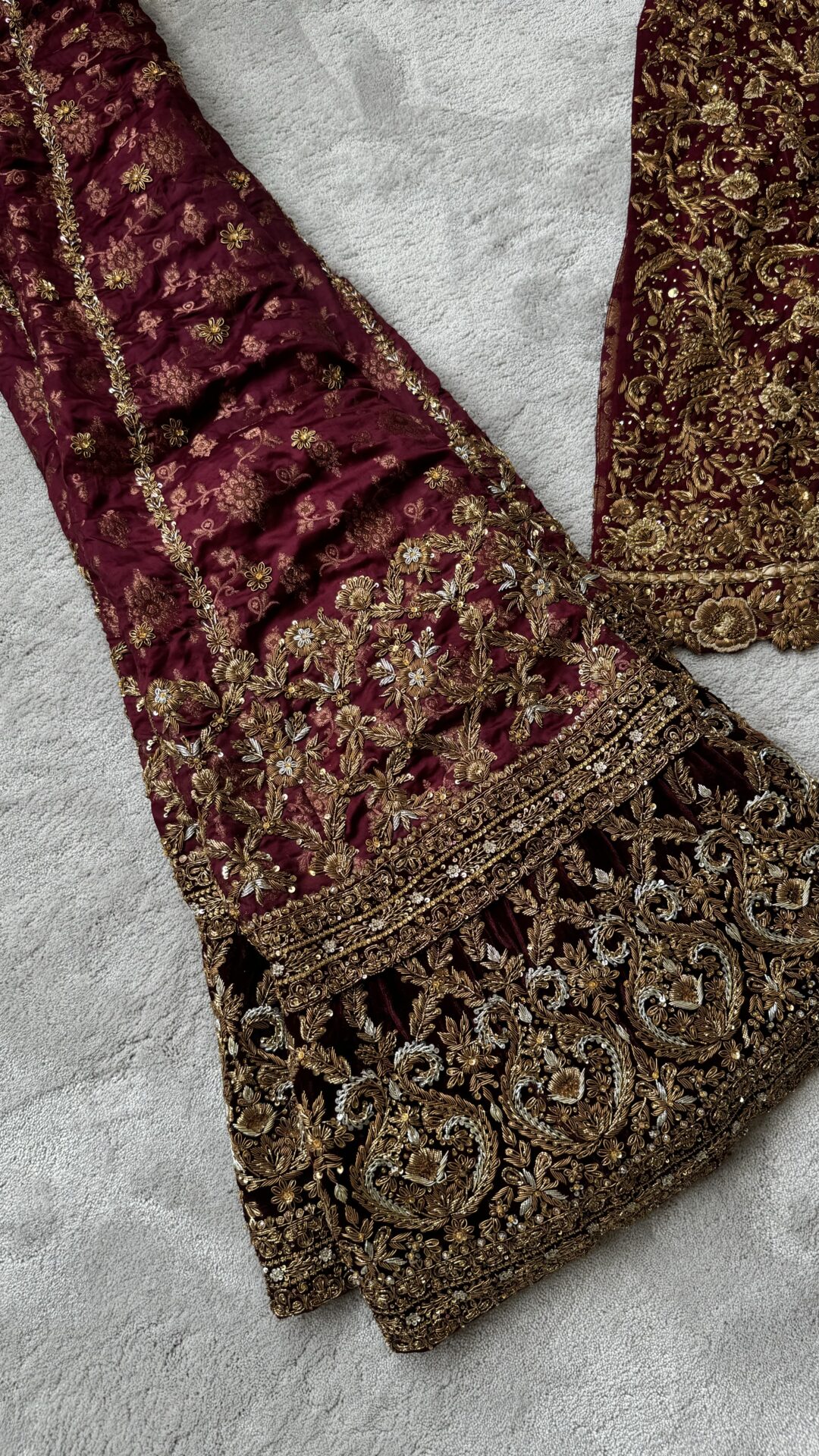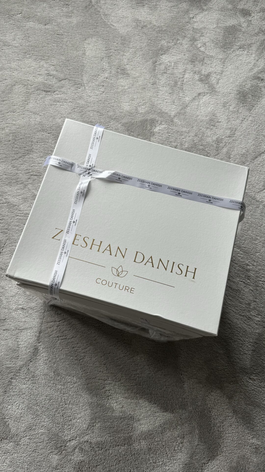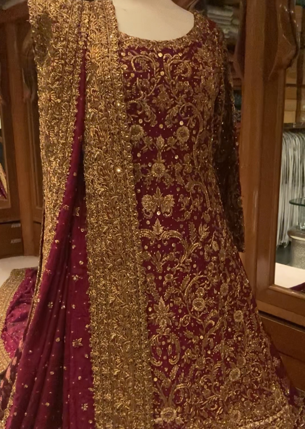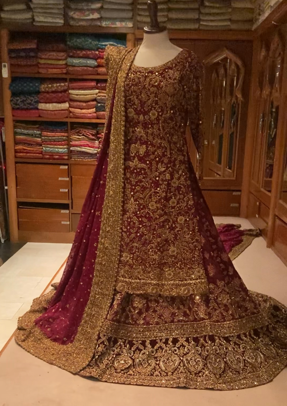 Brand new never worn heavily embellished Shakeels by Zeeshan Danish bridal with a trail and 6 metre thick 4 sided border with a jaal