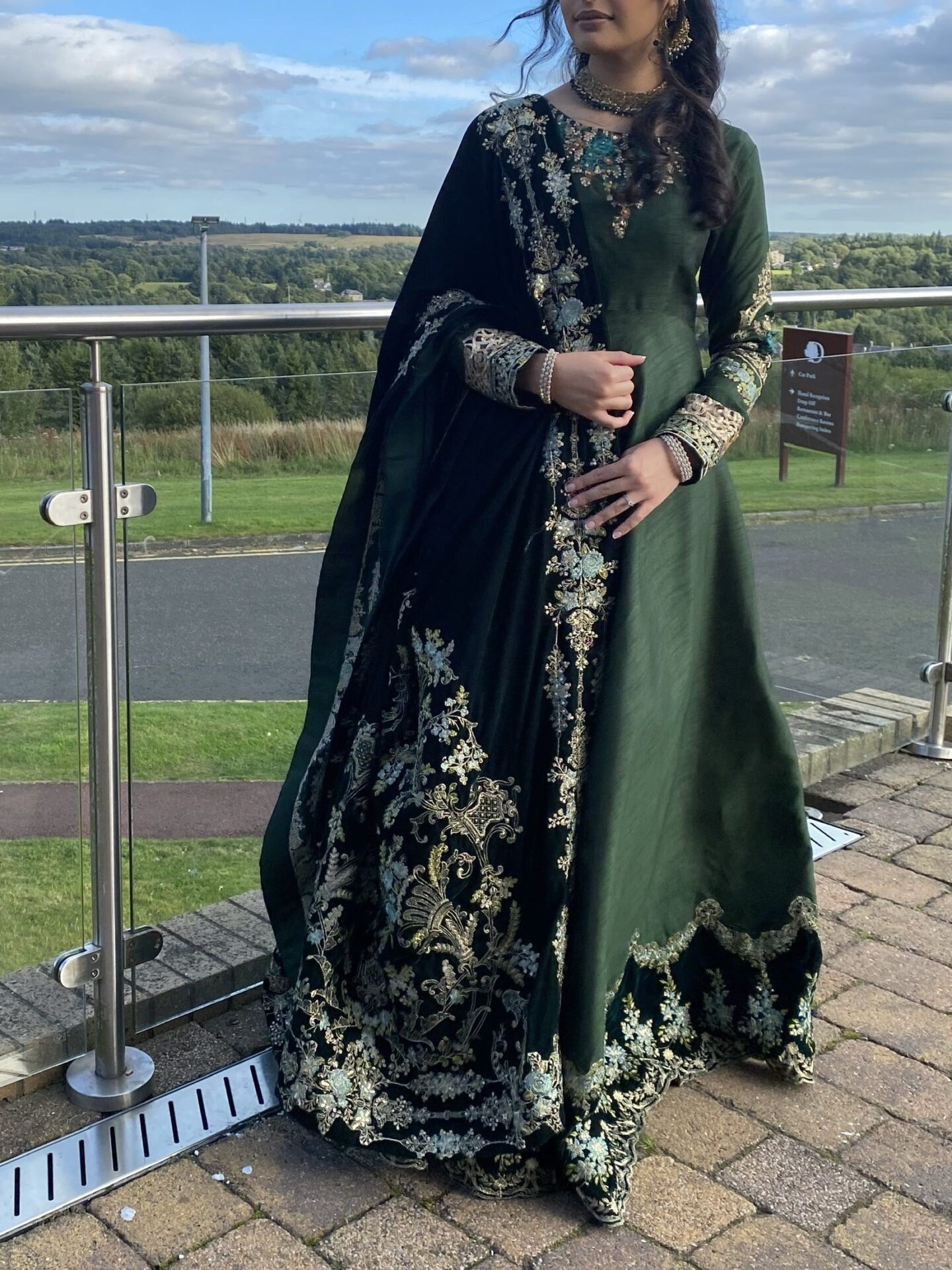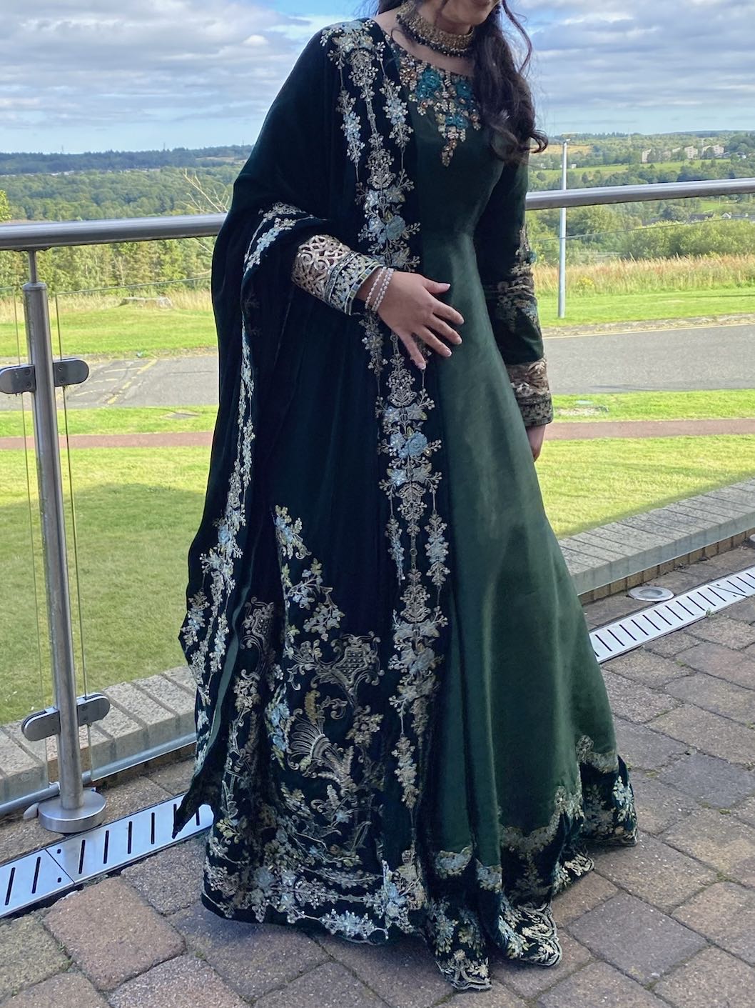 - S/M Emerald green dress with shawl and also a matching dupatta so you can mix and match