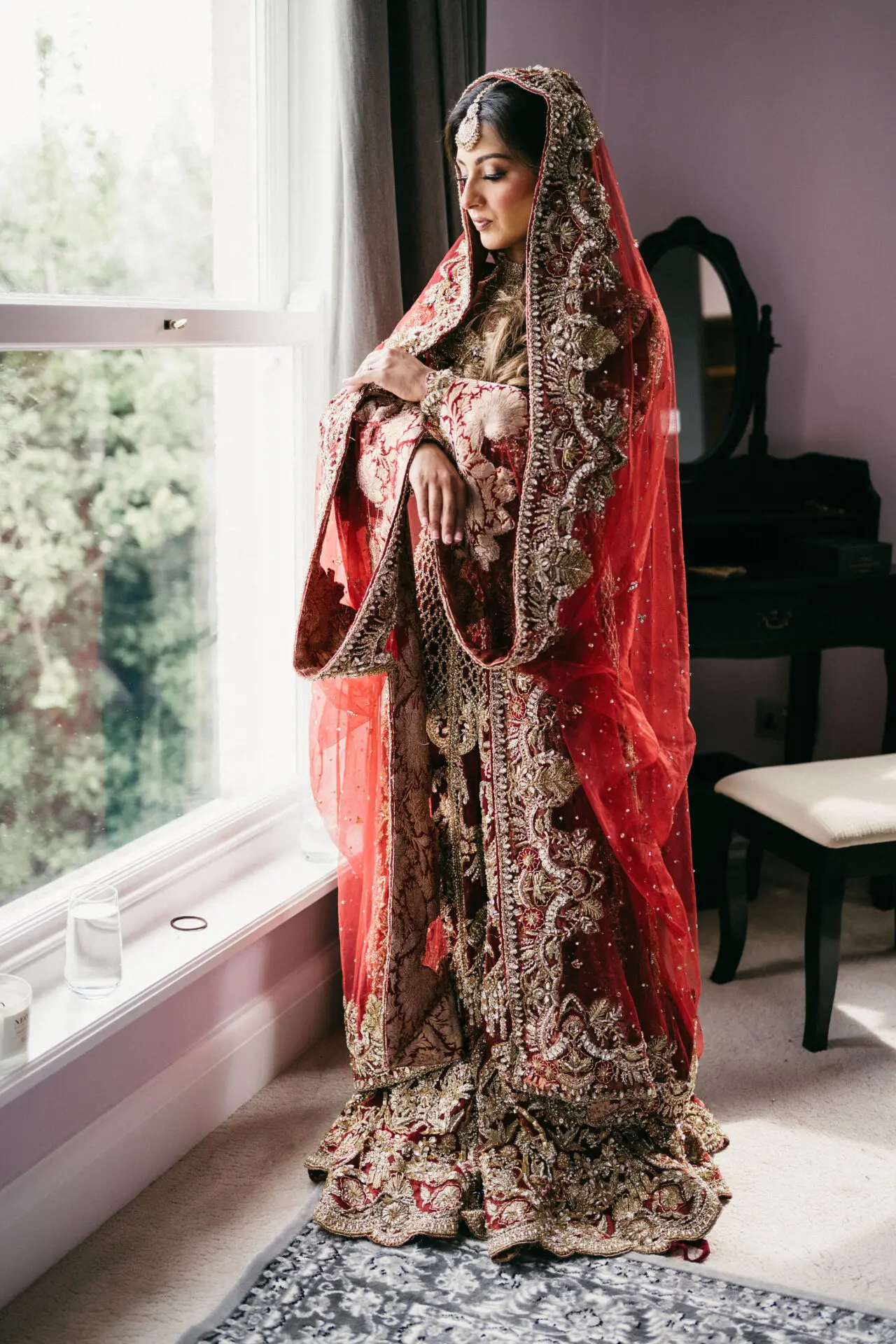 Gorgeous embroider Suffuse custom made Asian wedding gown with can can skirt and dupatta. Happy to sell full jewellery set too if buyer interested.