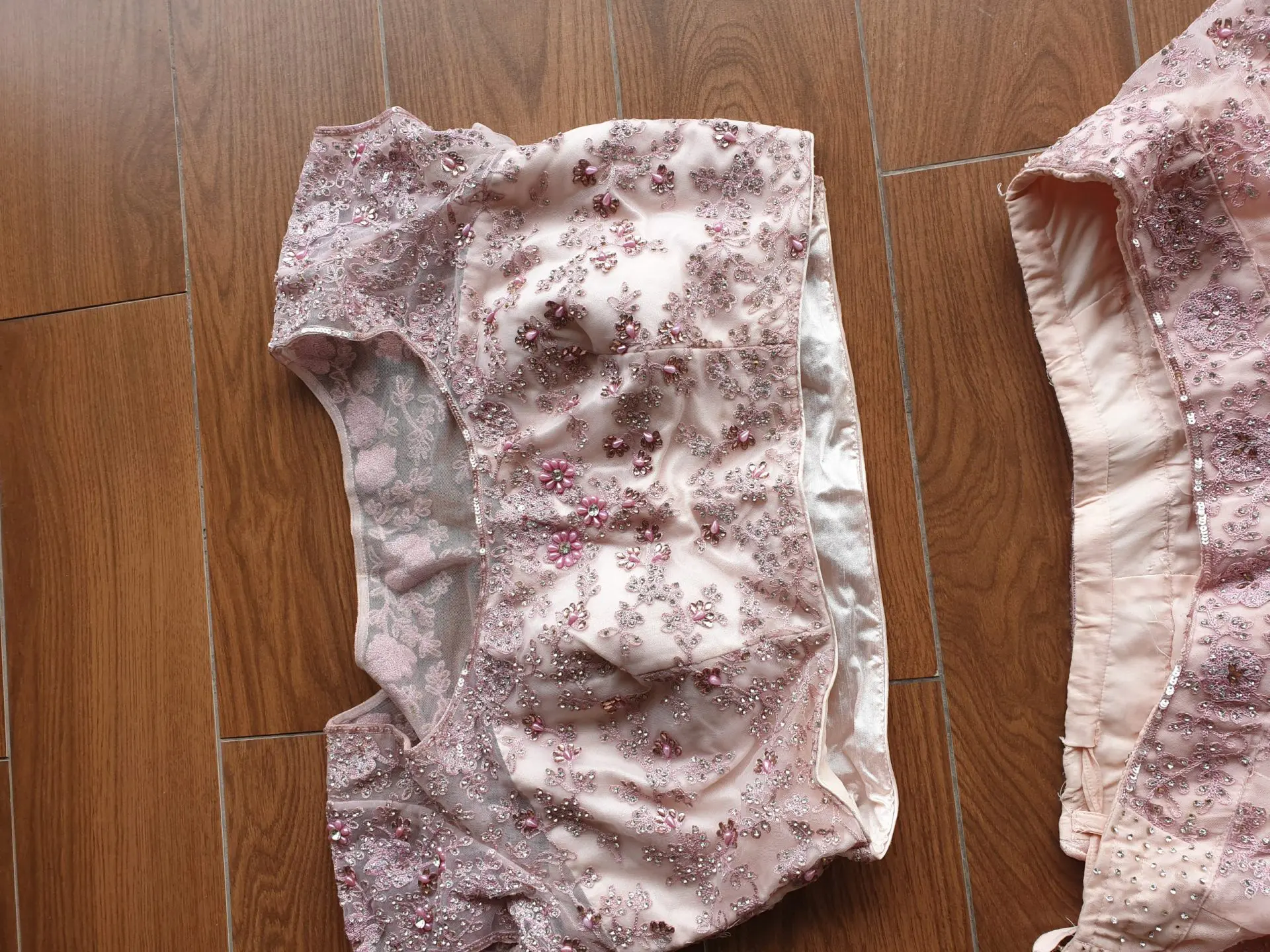 Beautiful pink bridal lehenga purchased pre-COVID for wedding. Bought in Chennai, India and altered to fit. Hand-sewn detailing on skirt and blouse. Worn only once, and only selling as am moving home. Hoping to sell to someone who will love it just as much!