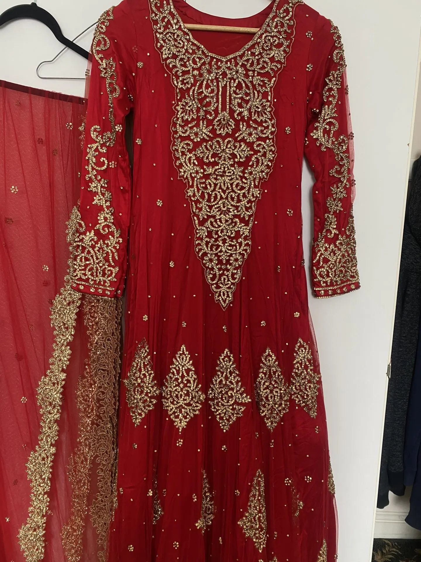 beautiful red and gold long dress worn once for 5 hours on wedding day as a bride - Mint condition