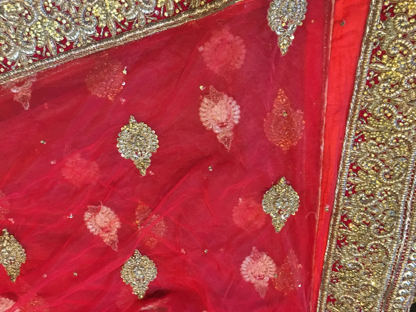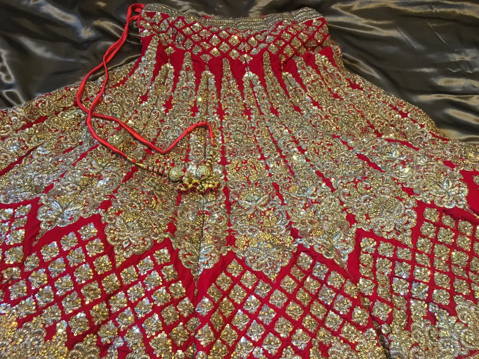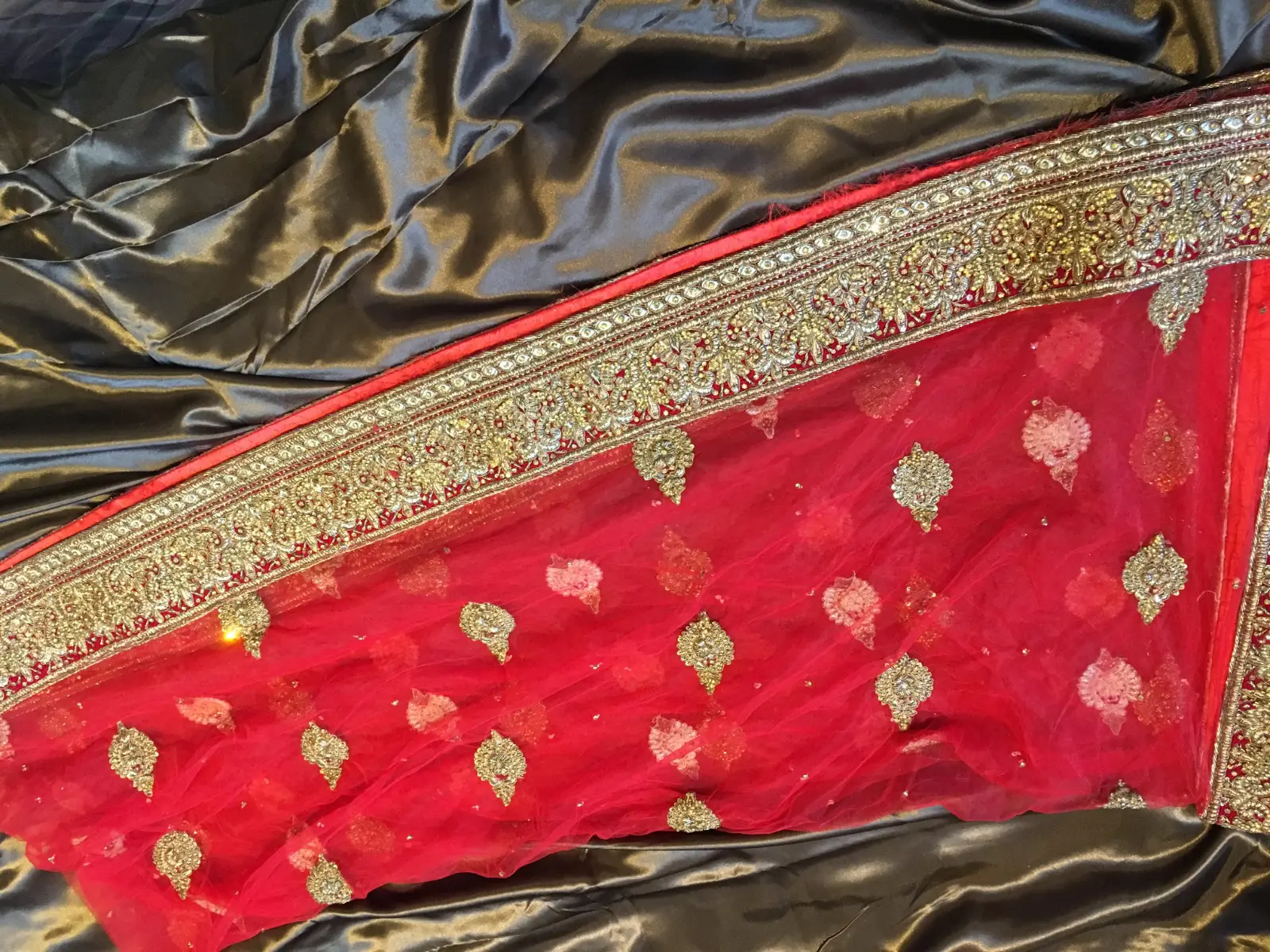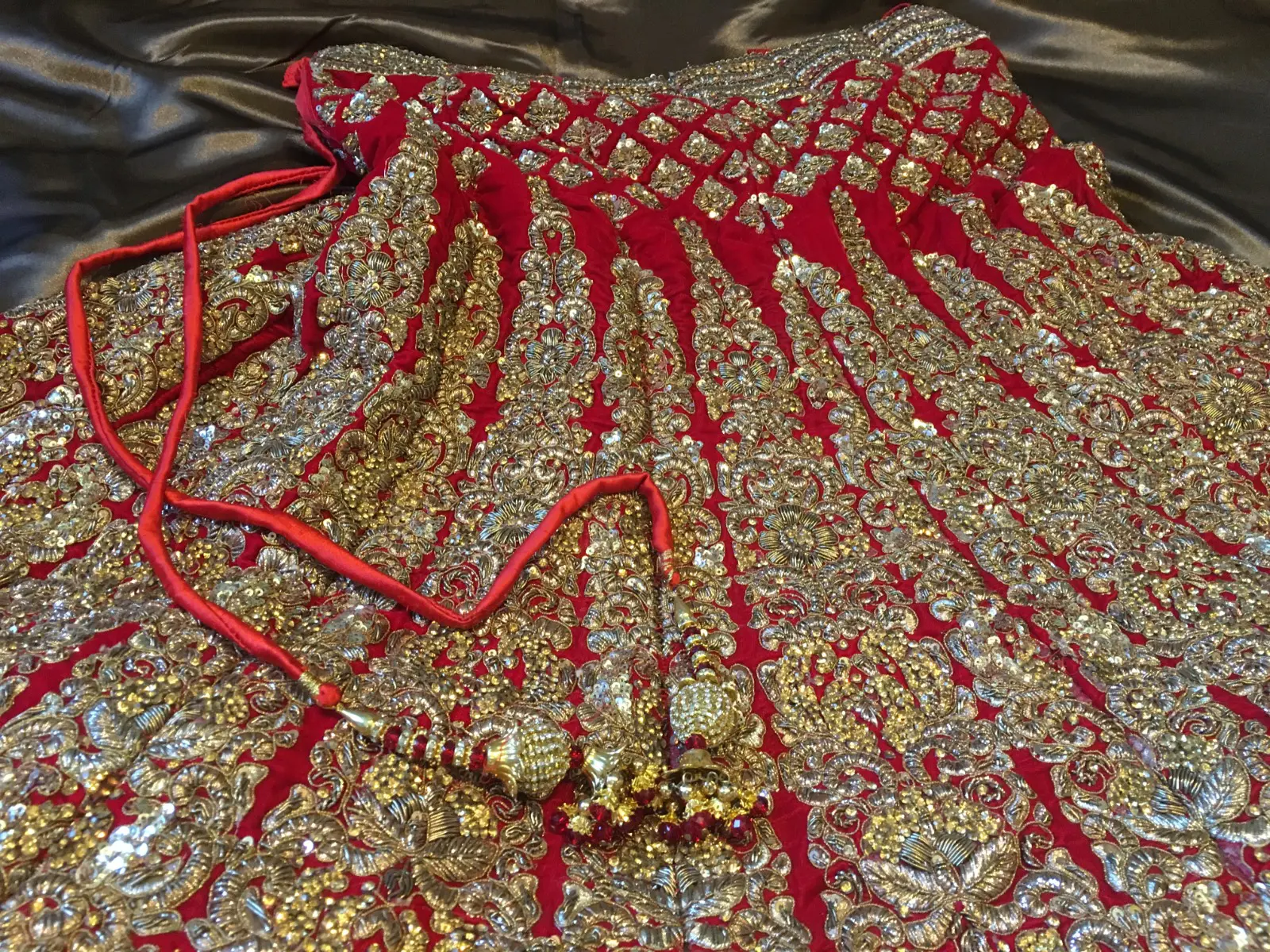 Lehenga skirt is fully underlined with netting for full A-line shape.